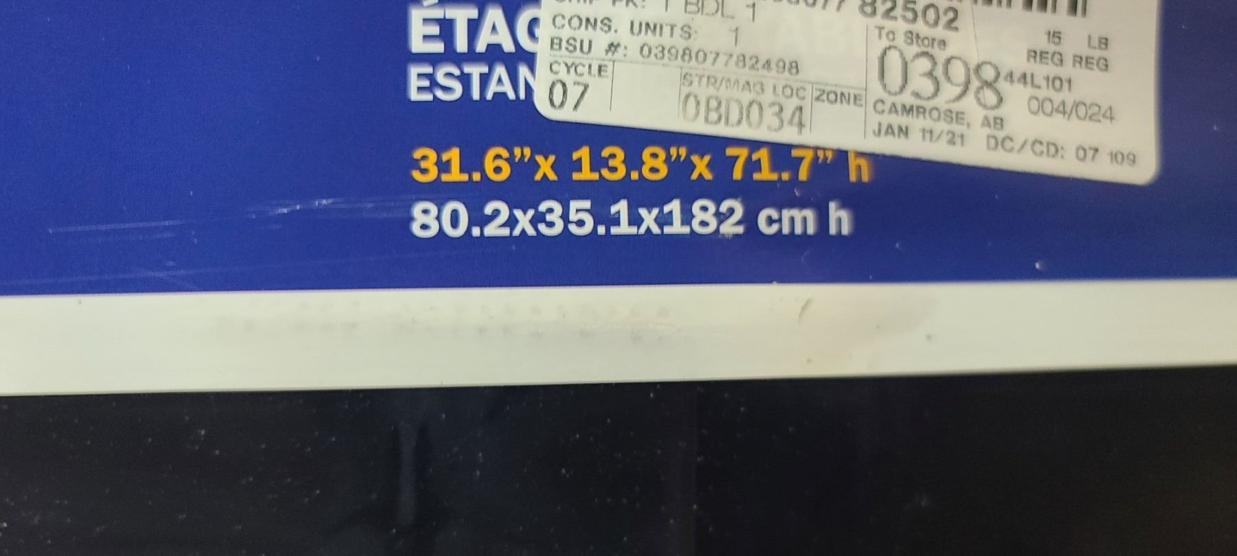 31.6" X 13.8 X 71.7" 385LB SHELVING UNIT