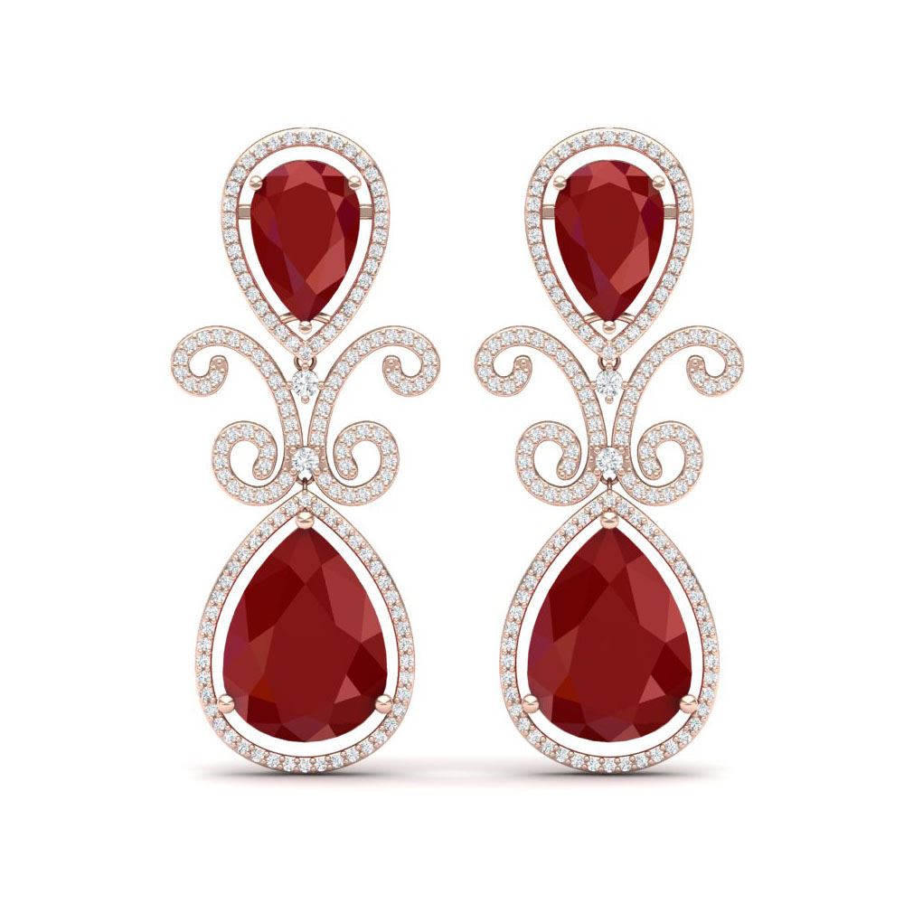31.6 ctw Designer Ruby & VS Diamond Earrings 18K Rose Gold