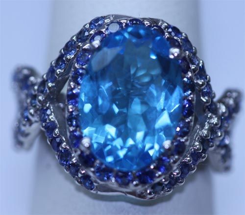 31.60 CTW BLUE TOPAZ AND SAPPHIRE RING .925 STERLING SI **|**|** 31.60 CTW BLUE TOPAZ AND SAPPHIRE RING .925 STERLING SILVER; BLUE TOPAZ 6.33 CTW; SAPPHIRE 1.76 CTW ; MSRP: $1220