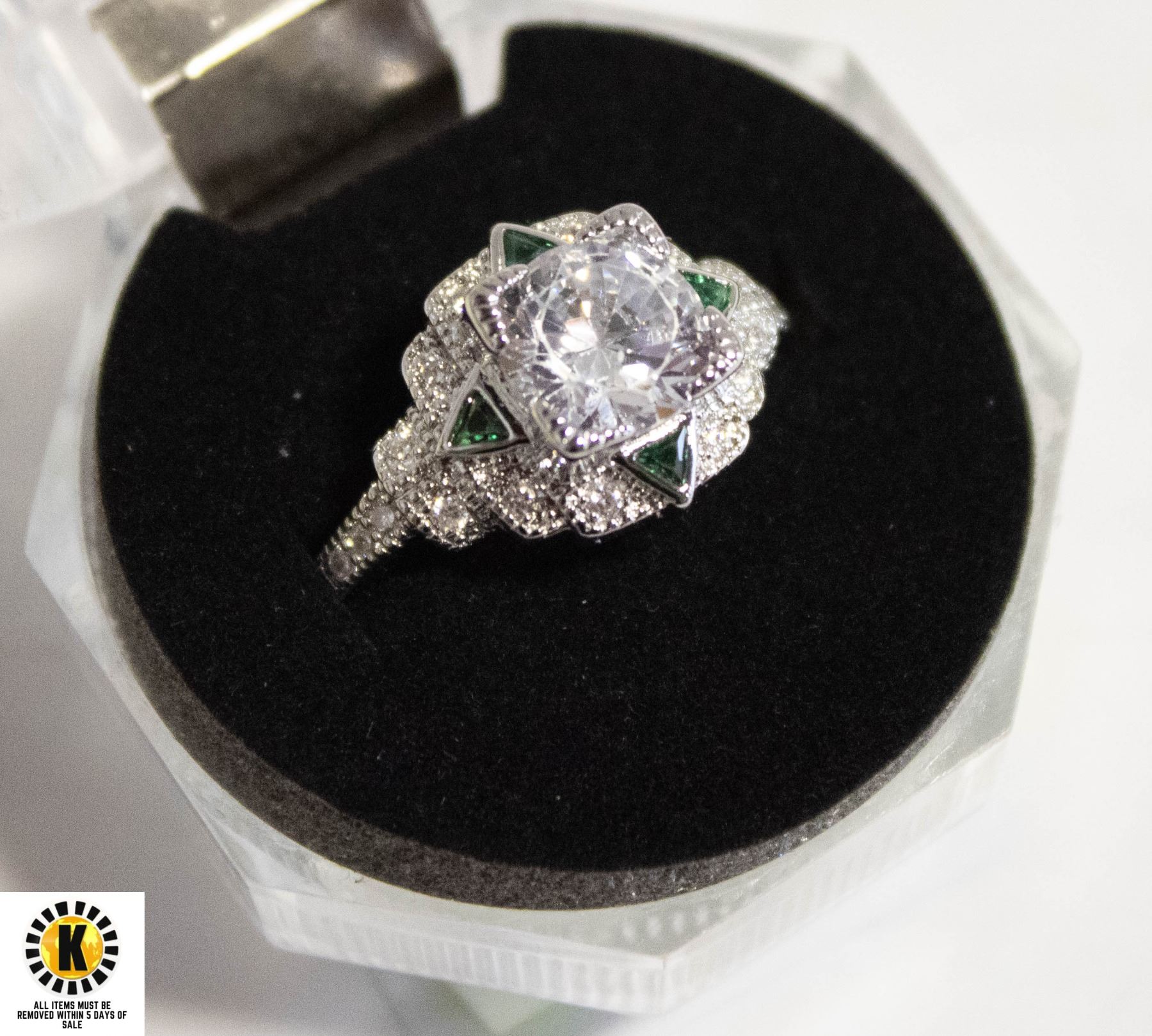 CENTER OF RING WITH CLEAR ACCENTS SIZE 8.5