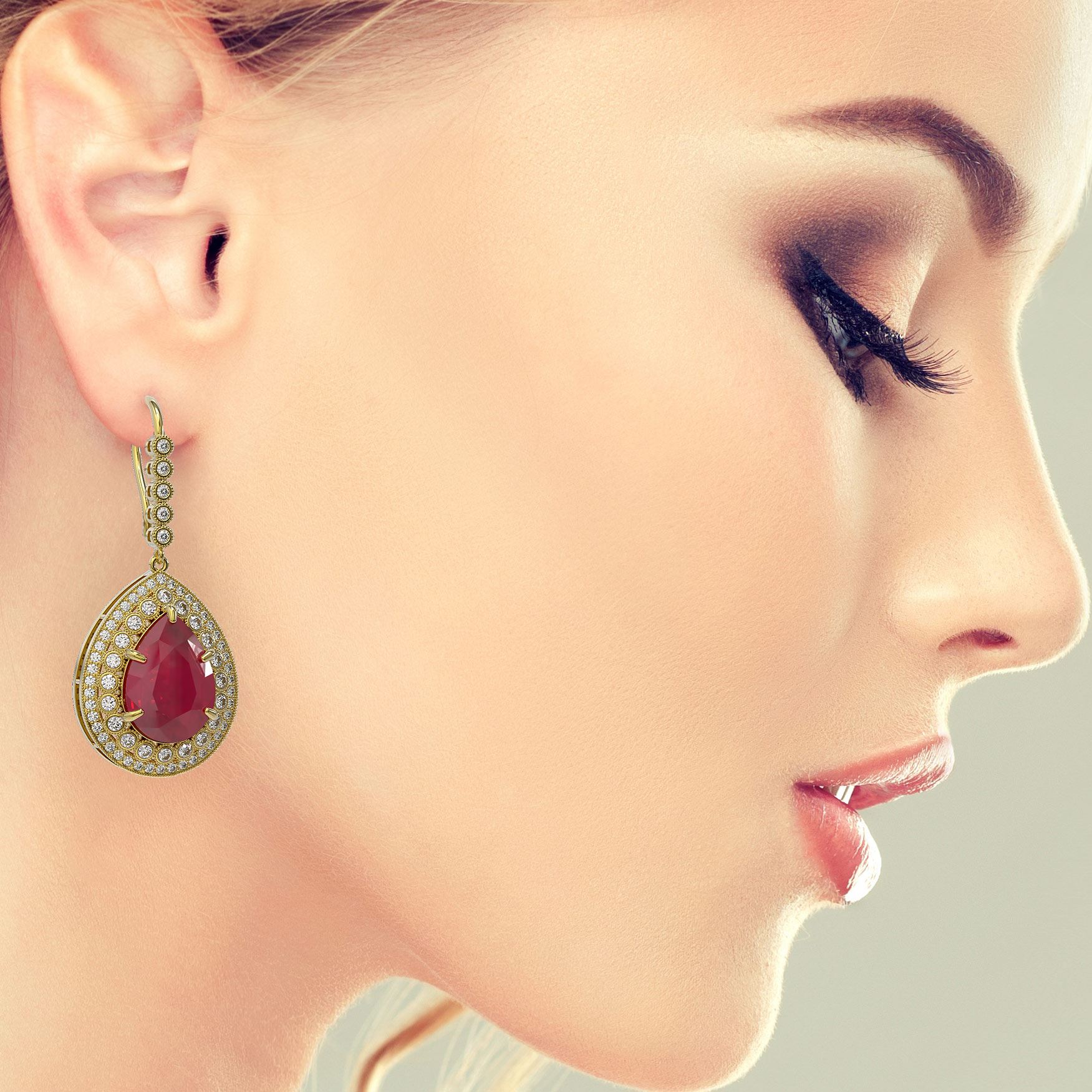 REF-646G4W - SKU: 43303 ---- 31.74 ctw Certified Ruby & Diamond Victorian Earrings 14K Yellow Gold