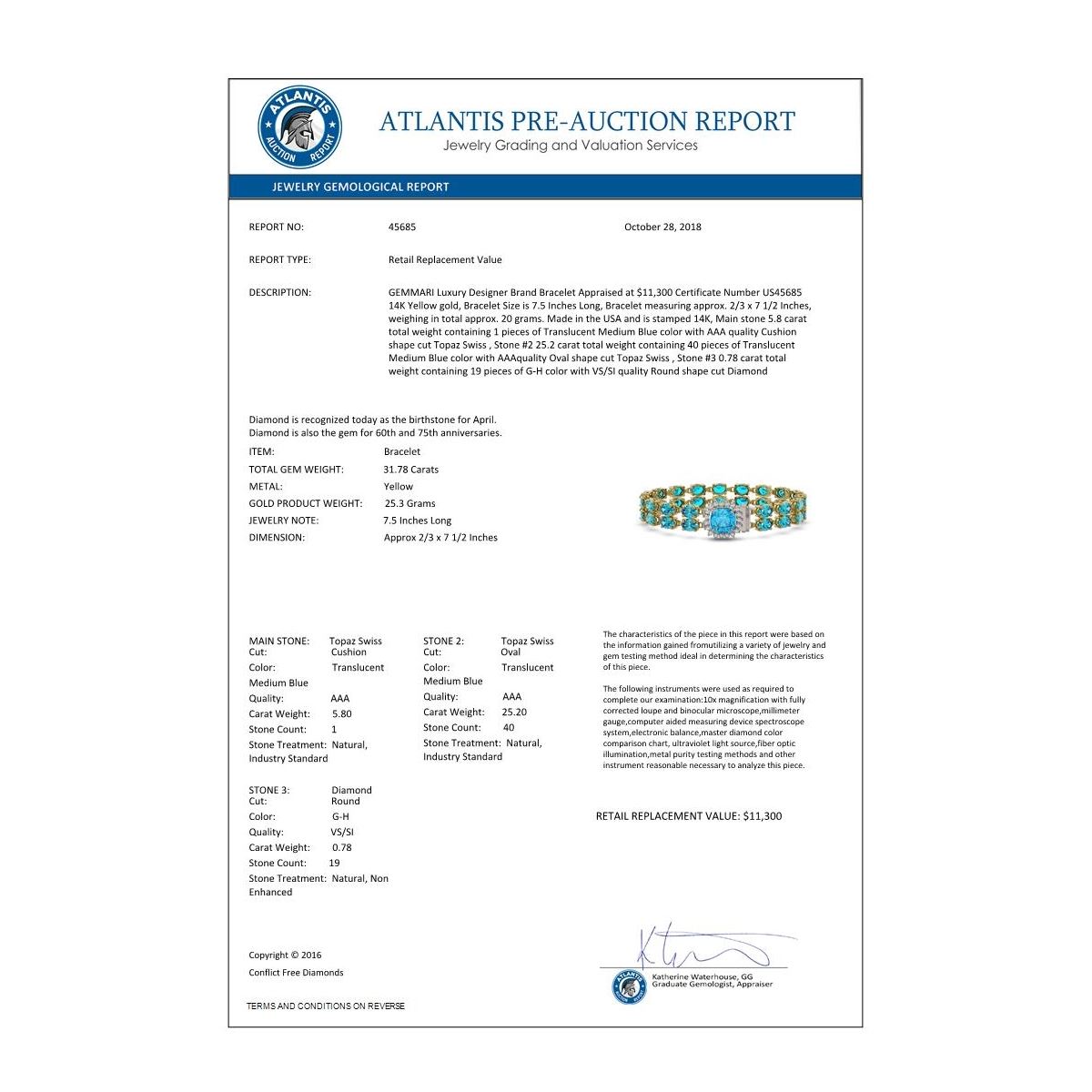 31.78 ctw Swiss Topaz & Diamond Bracelet 14K Yellow Gold