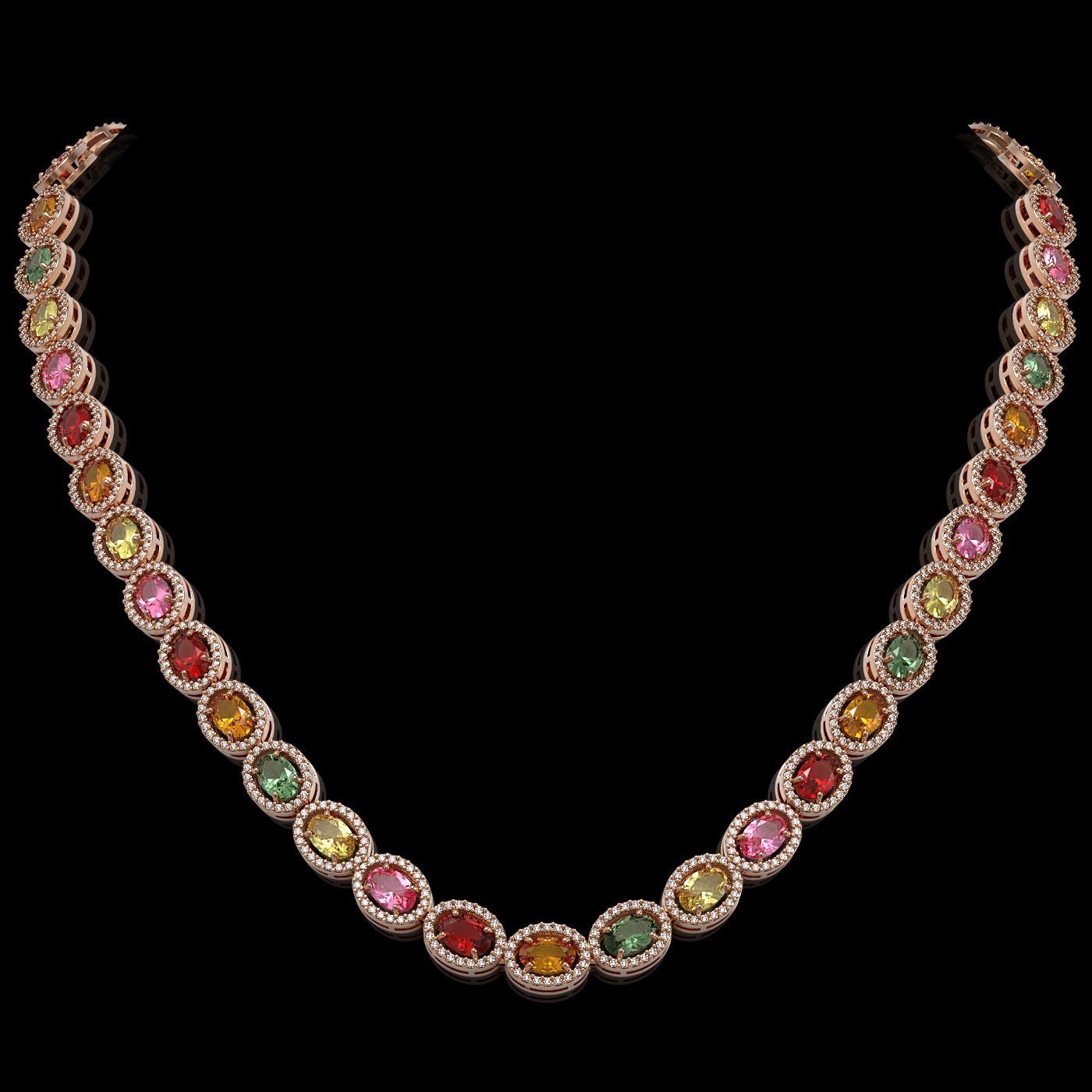 REF-674X4A - SKU: 40449 ---- 31.96 ctw Multi Color Sapphire & Diamond Micro Pave Necklace 10k Rose Gold