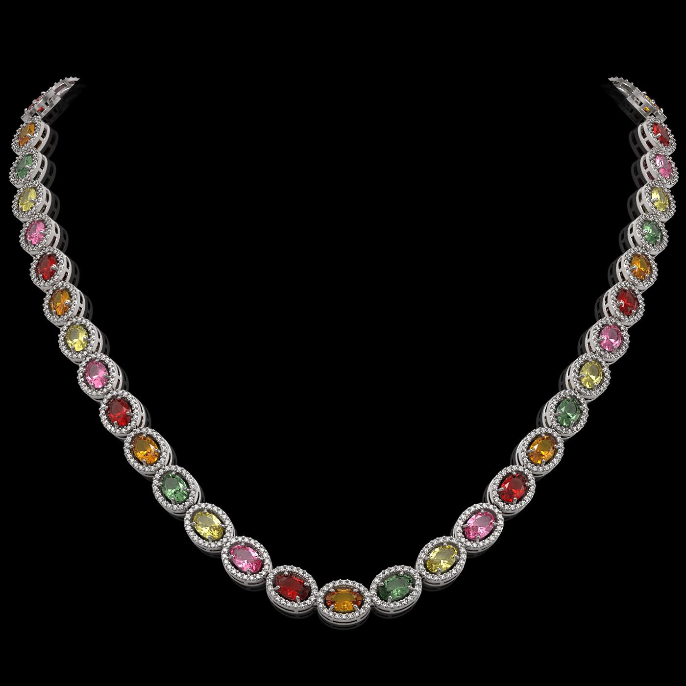 REF-674K4Y - SKU: 40448 ---- 31.96 ctw Multi Color Sapphire & Diamond Micro Pave Necklace 10k White Gold