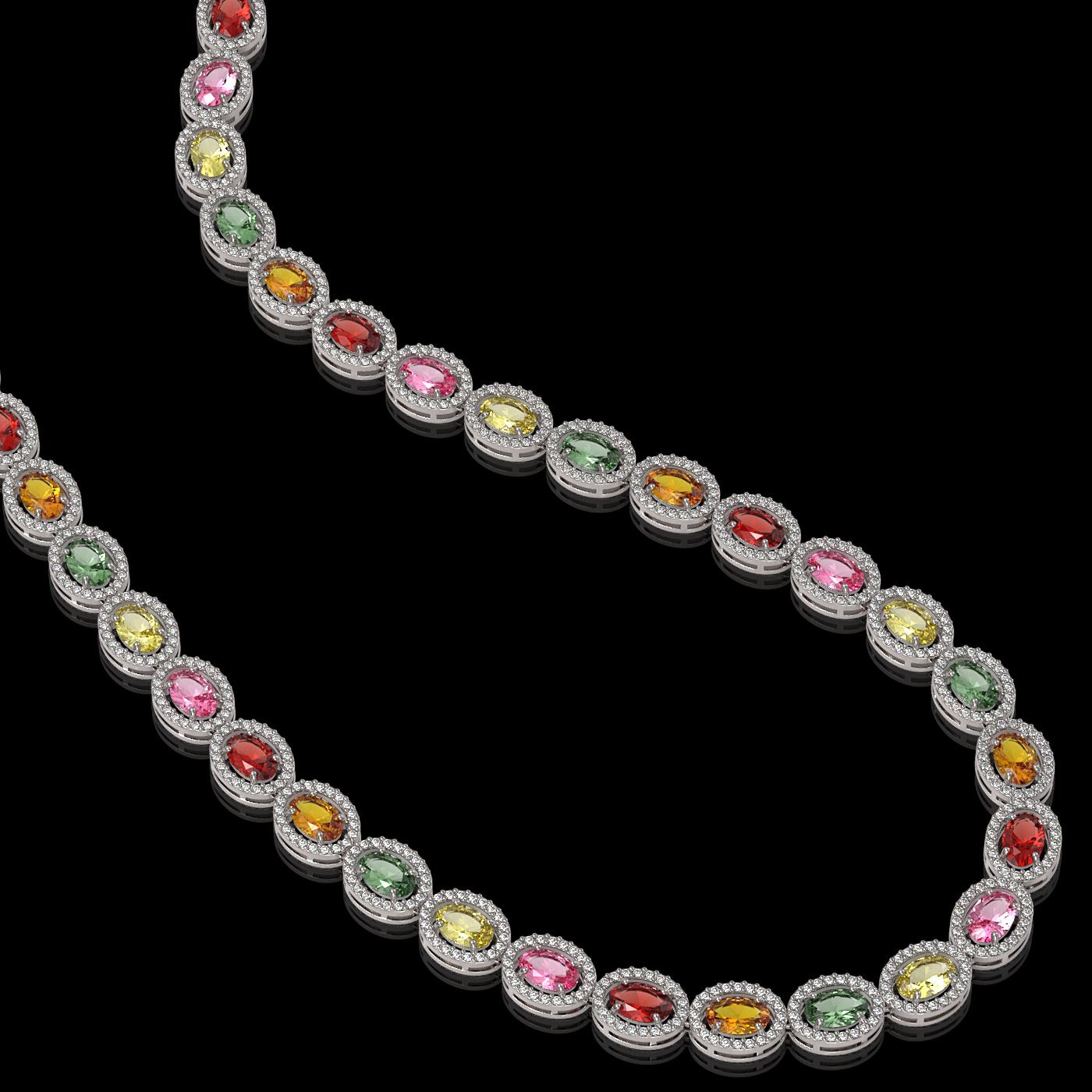 REF-674K4Y - SKU: 40448 ---- 31.96 ctw Multi Color Sapphire & Diamond Micro Pave Necklace 10k White Gold