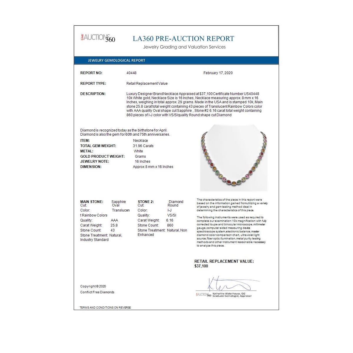 REF-674M4G - SKU: 40448 ---- 31.96 ctw Multi Color Sapphire & Diamond Micro Pave Necklace 10k White Gold