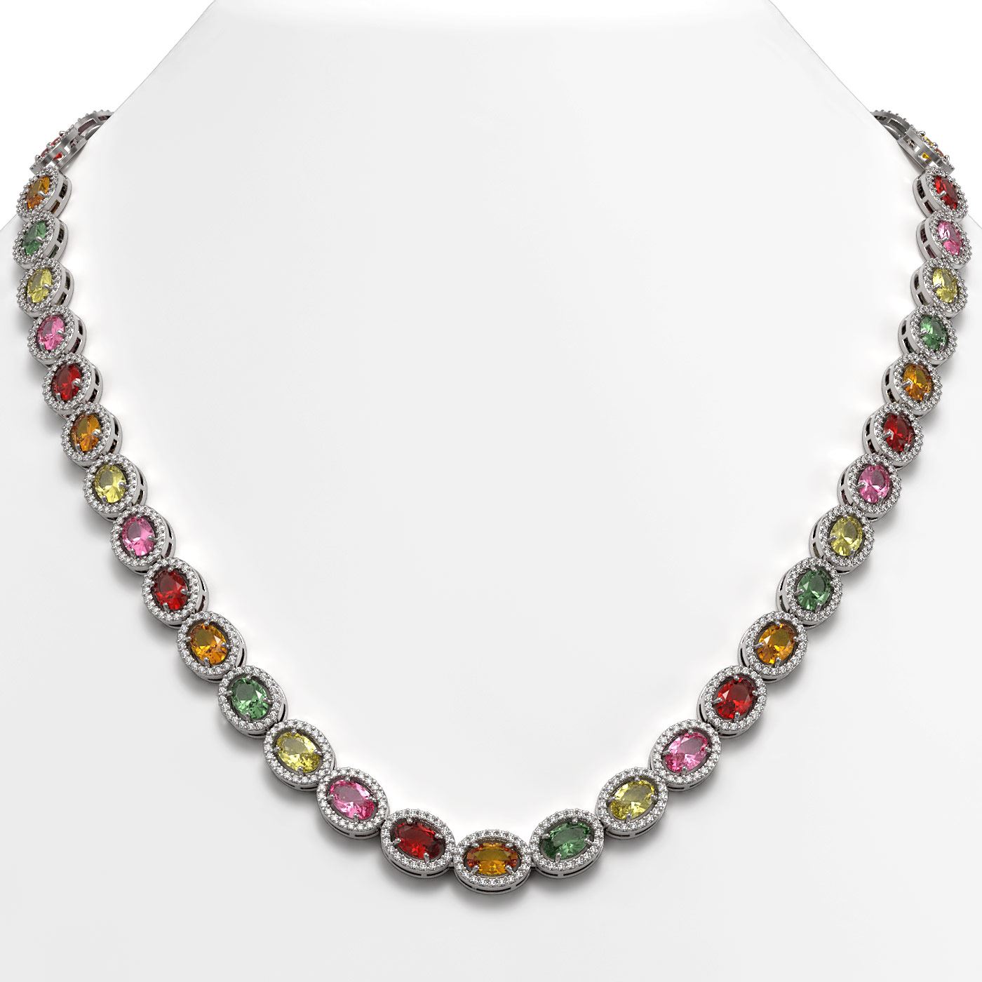 REF-674M4G - SKU: 40448 ---- 31.96 ctw Multi Color Sapphire & Diamond Micro Pave Necklace 10k White Gold