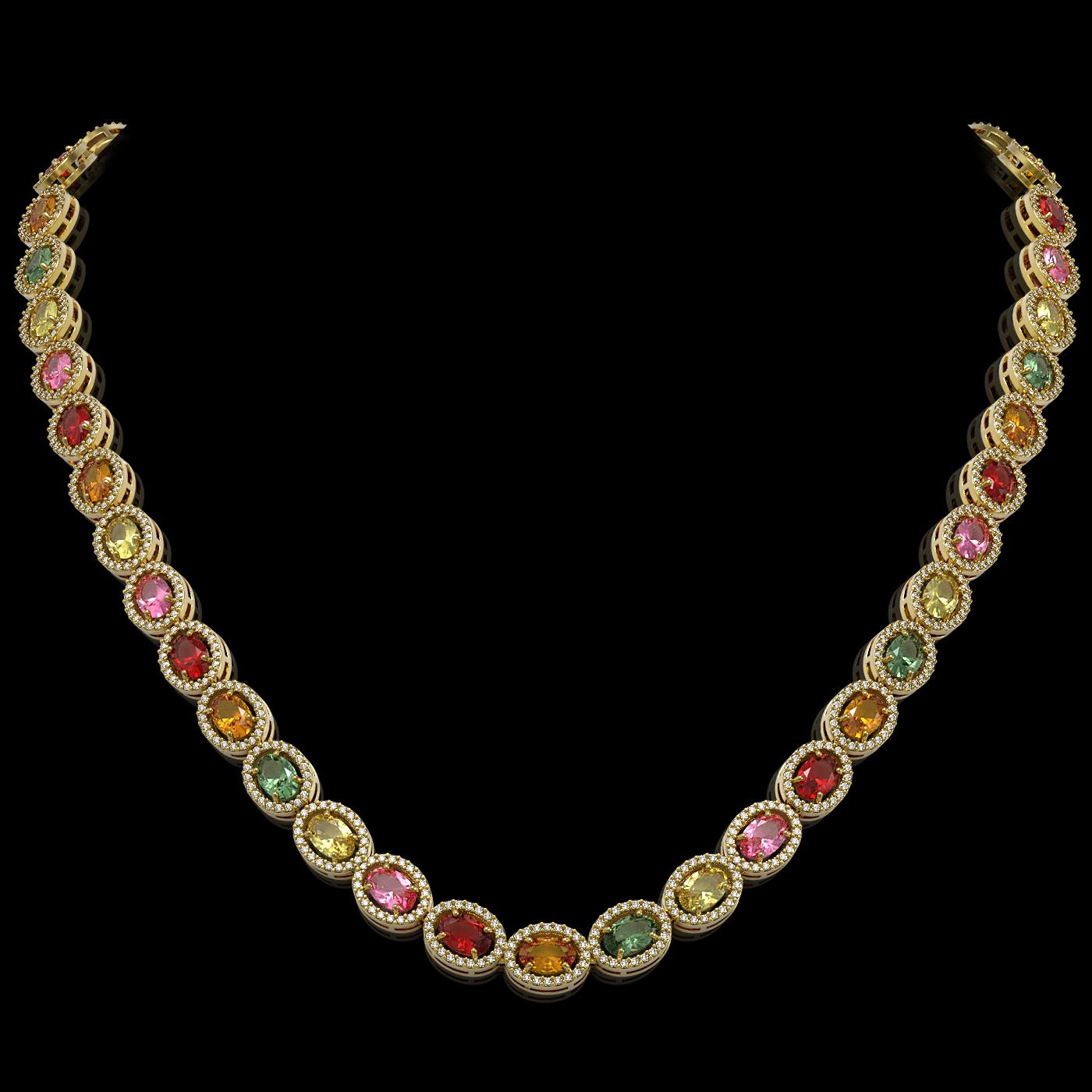 REF-674N4F - SKU: 40450 ---- 31.96 ctw Multi Color Sapphire & Diamond Micro Pave Necklace 10k Yellow Gold