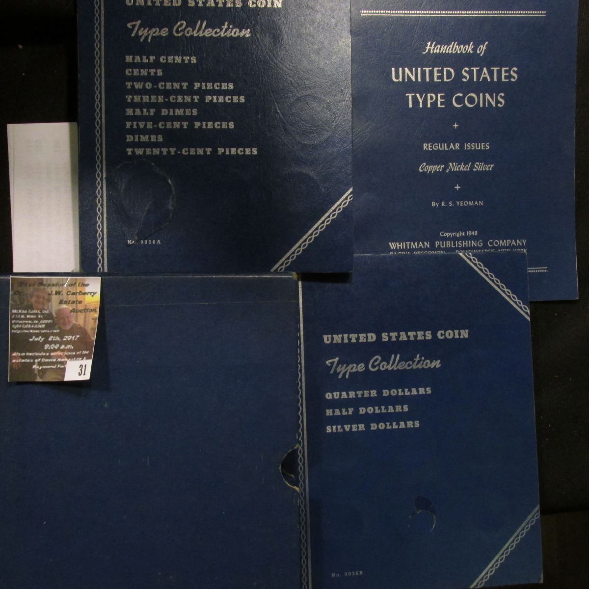 31. Album holder with Type Set books, one of which contains a 1963 D Franklin Silver Half Dollar.