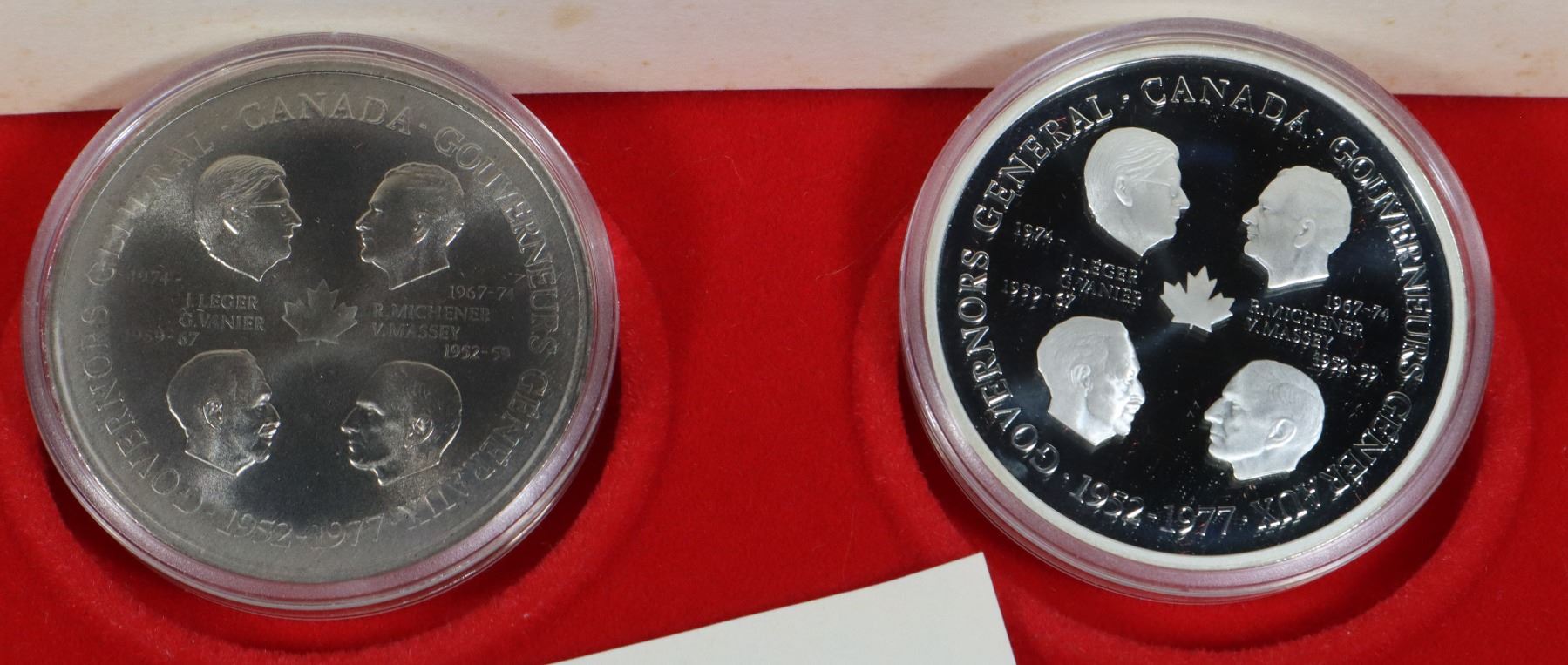 1977 SILVER & CUPRONICKEL 2 COINS CASED CANADIAN