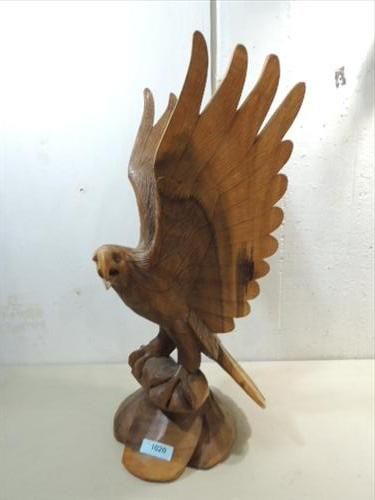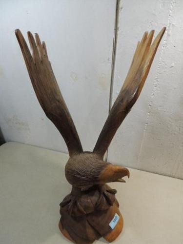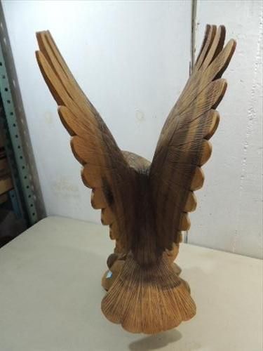 31"H SOLID WALNUT HAND CARVED EAGLE, WING OPENED. NO ARTIST MARKS. AS SHOWN. VIEW PICTURE FOR DETAIL.