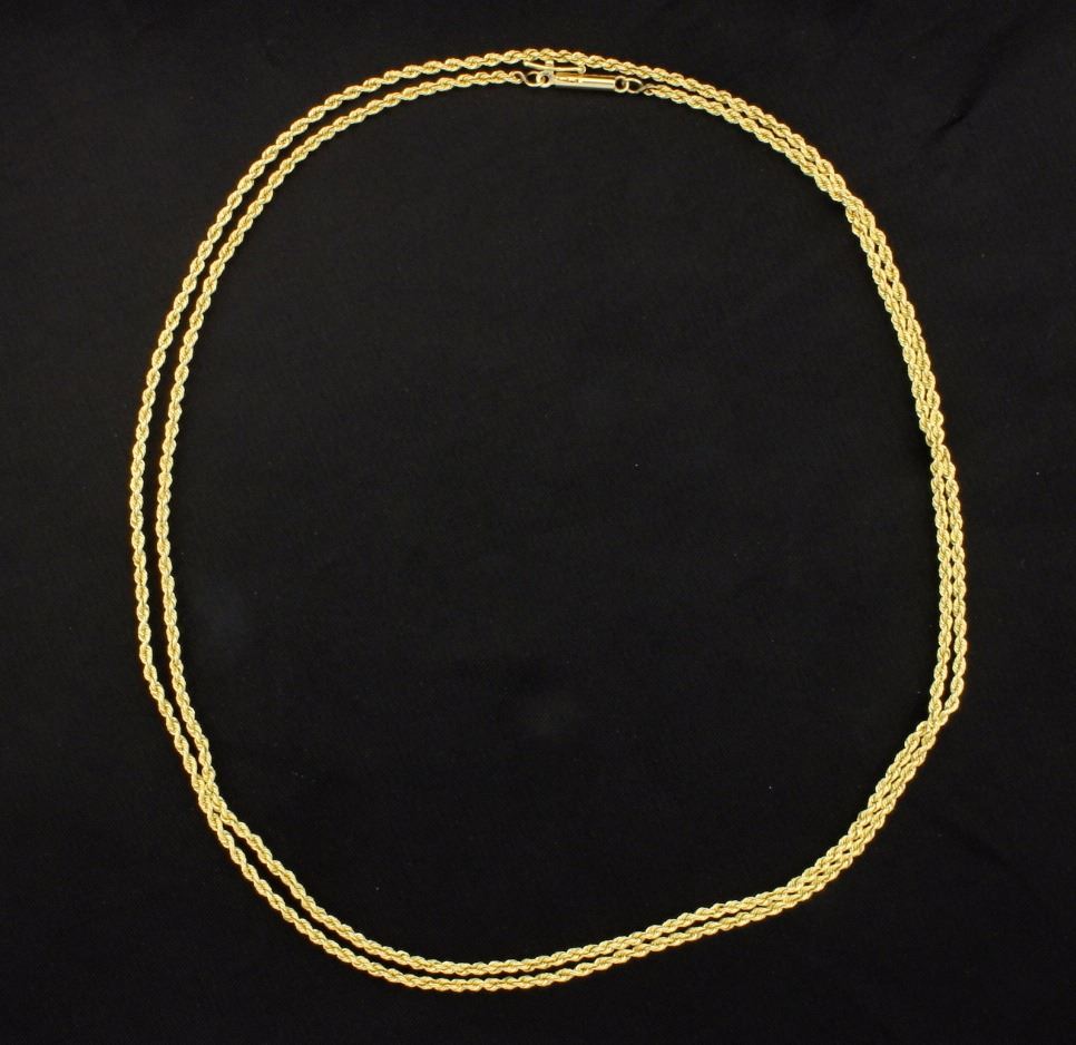 14K yellow gold, the chain is 1.8mm thick and has a safety clasp. 8.7g