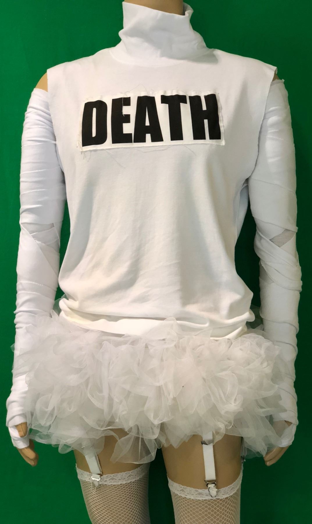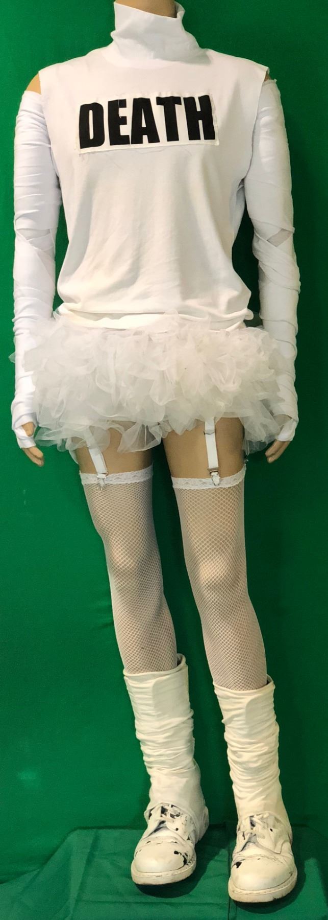 Screen used costume worn by "Death-Head", played by Torsten Voges in the Rob Zombie directed production of 31 (2016), the horror/thriller movie where five carnival workers are kidnapped and held hostage in an abandoned, Hell-like compound where they are forced to participate in a violent game, the goal of which is to survive twelve hours against a gang of sadistic clowns.