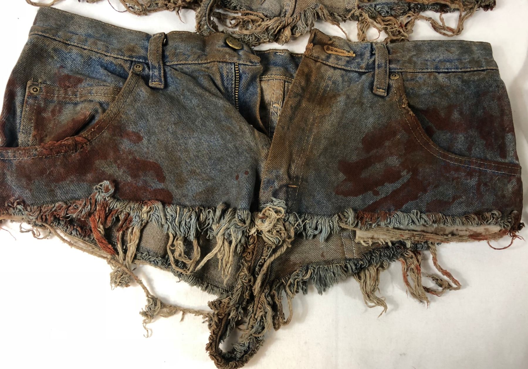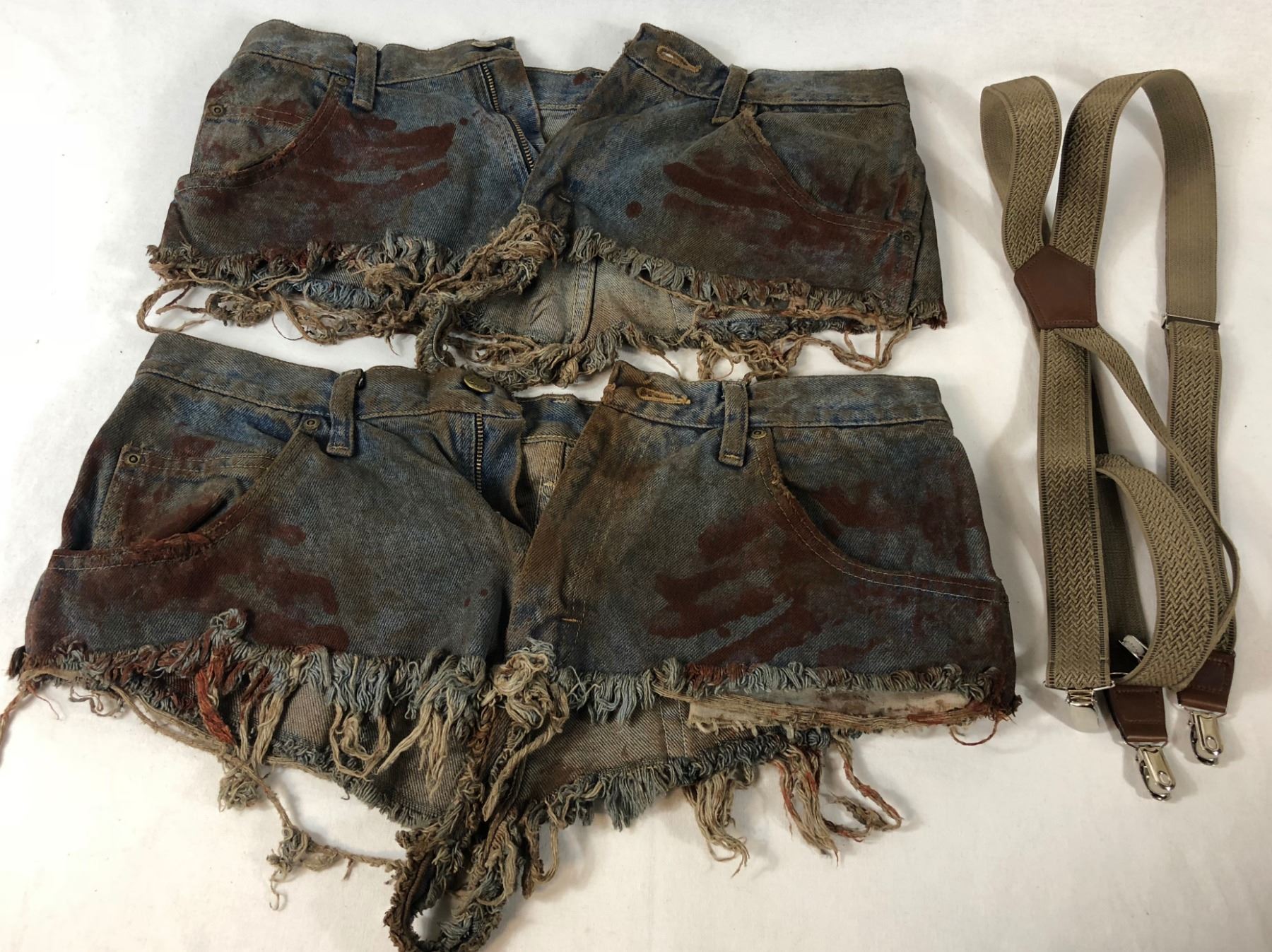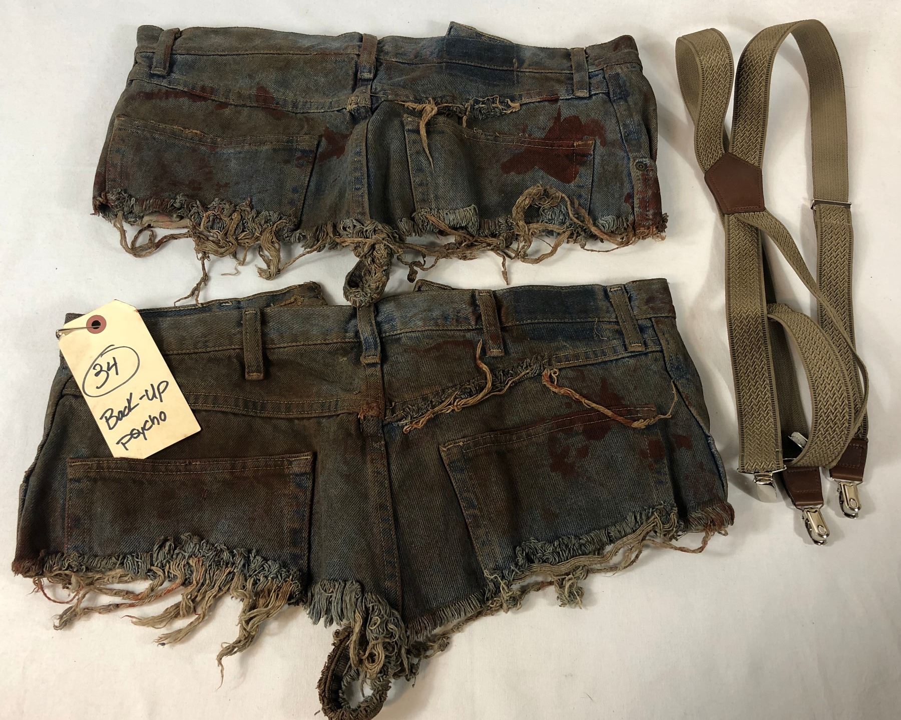 Back-Up costume made for "Psycho-Head", played by Lew Temple in the Rob Zombie directed production of 31 (2016), the horror/thriller movie where five carnival workers are kidnapped and held hostage in an abandoned, Hell-like compound where they are forced to participate in a violent game, the goal of which is to survive twelve hours against a gang of sadistic clowns.