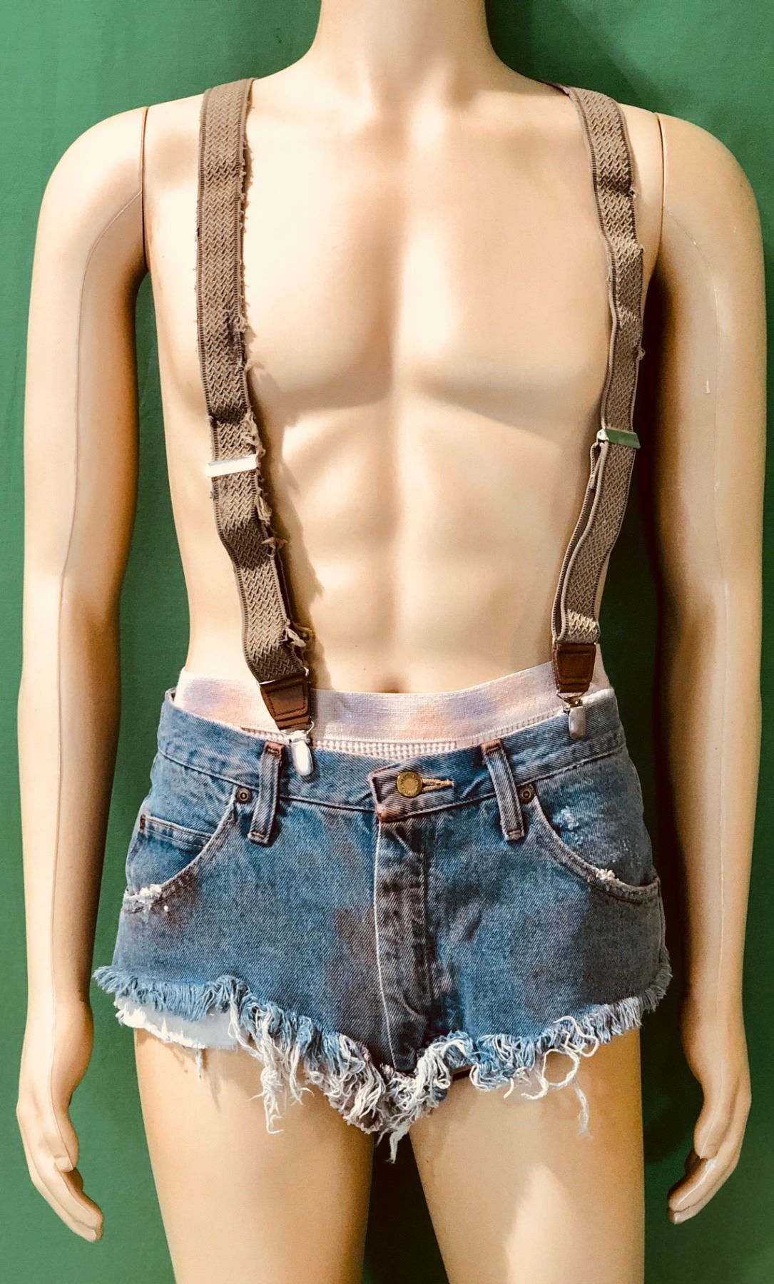 Screen used costume worn by "Psycho-Head", played by Lew Temple in the Rob Zombie directed production of 31 (2016), the horror/thriller movie where five carnival workers are kidnapped and held hostage in an abandoned, Hell-like compound where they are forced to participate in a violent game, the goal of which is to survive twelve hours against a gang of sadistic clowns.