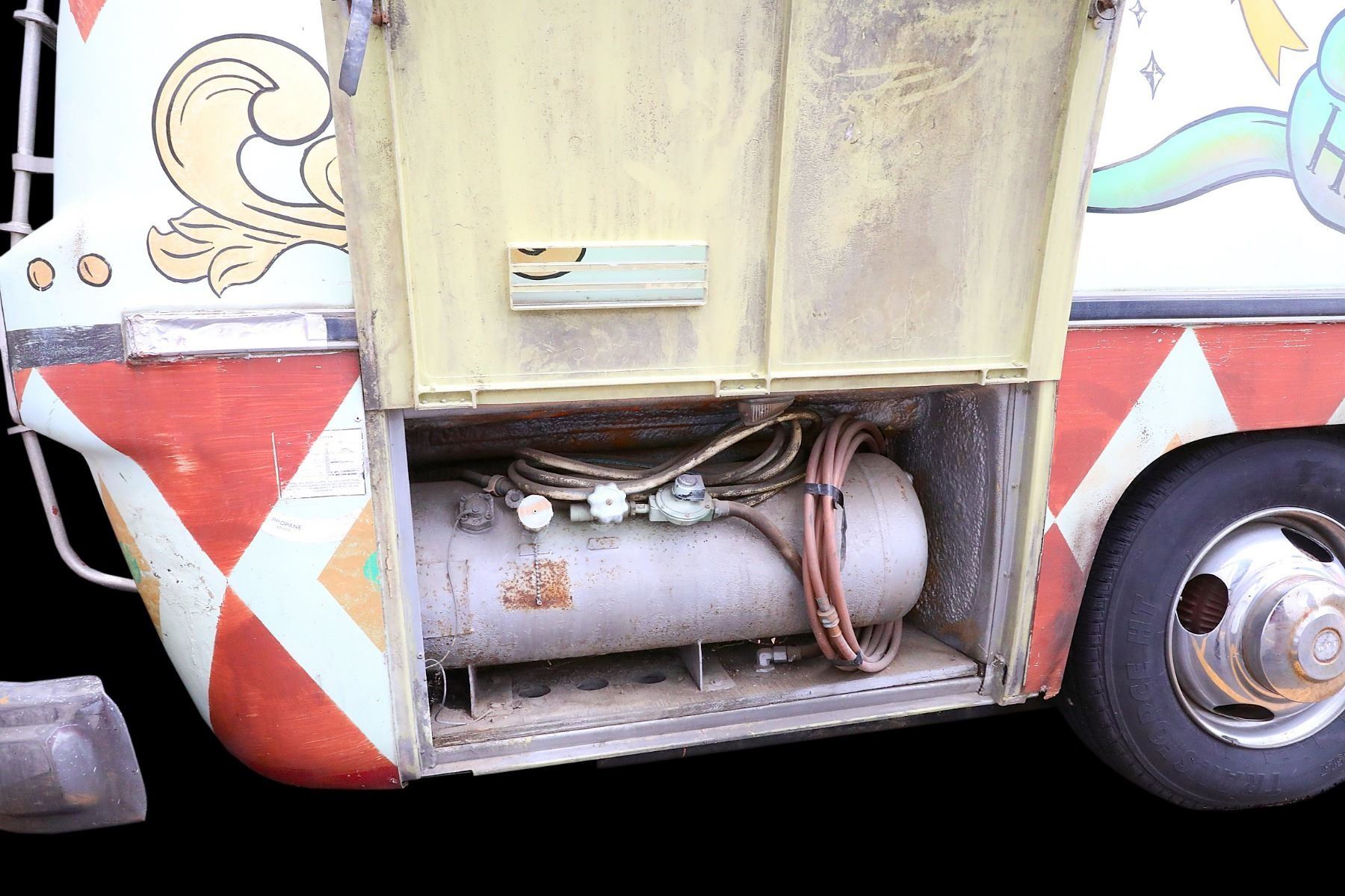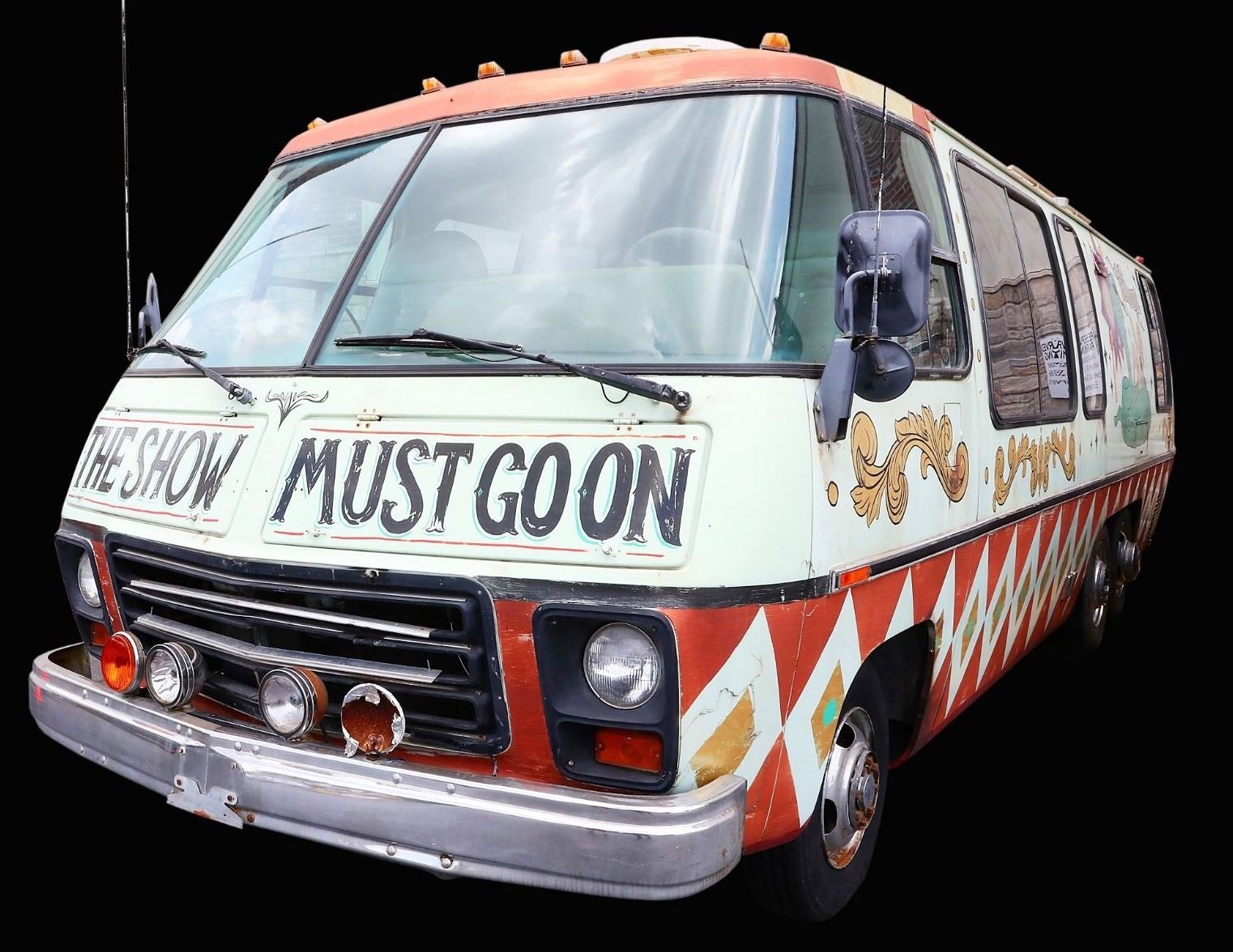 Original screen used 1976 GMC Motorhome from the horror film "31" (2016), written and directed by Rob Zombie, where five carnival workers are kidnapped and held hostage in an abandoned, Hell-like compound where they are forced to participate in a violent game, the goal of which is to survive twelve hours against a gang of sadistic clowns. Starring an ensemble cast featuring Sheri Moon Zombie, Jeff Daniel Phillips, Lawrence Hilton-Jacobs, Meg Foster, Richard Brake, Jane Carr, Judy Geeson, and Malcolm McDowell.