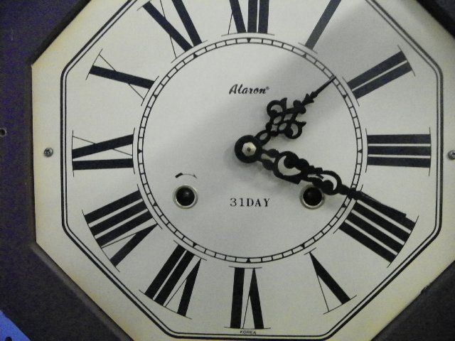In mahogany case, with pendulum & key. Approx. 30" L x 13.5" W.