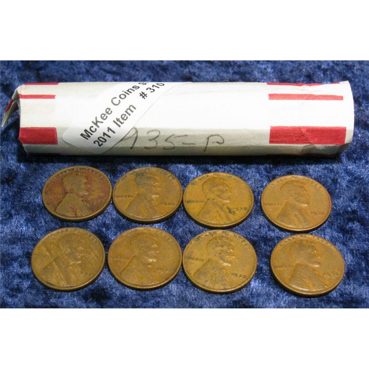 310. 1935 P Solid Date Roll of Lincoln Cents. Circulated.