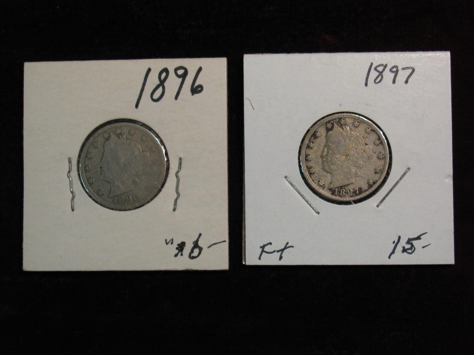 3101. 1896 & 97 Liberty Nickels. AG, F rough.