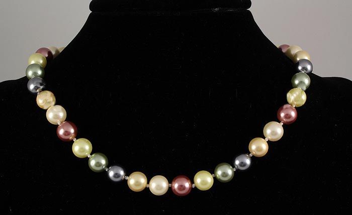 16 inches Beautiful Multi-color Freshwater Pearl Necklace w/ Magnetic Ball Lock; Size: 10mm