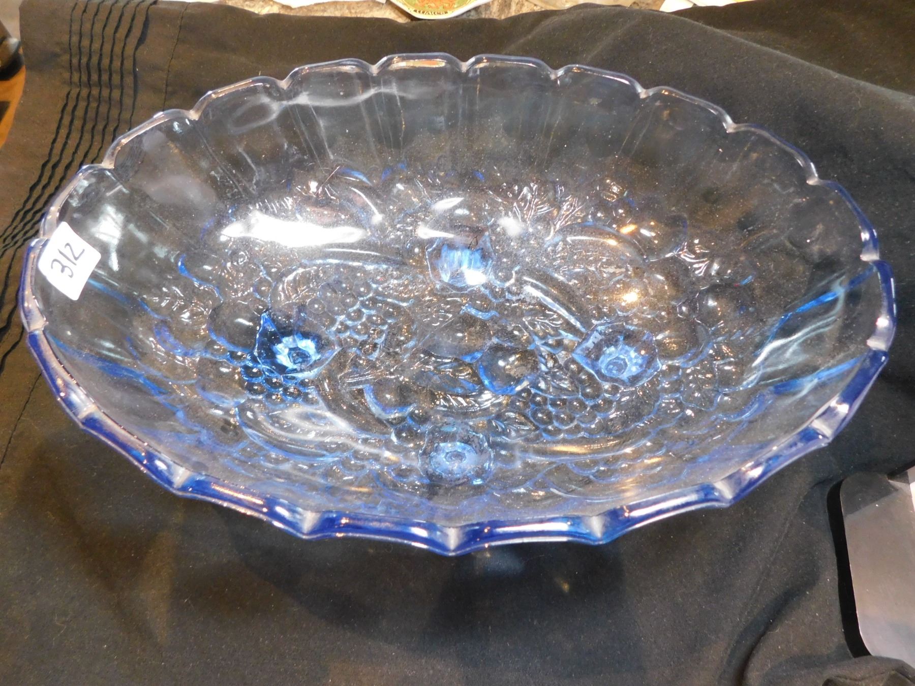 312. FOOTED BLUE GLASS FRUIT BOWL