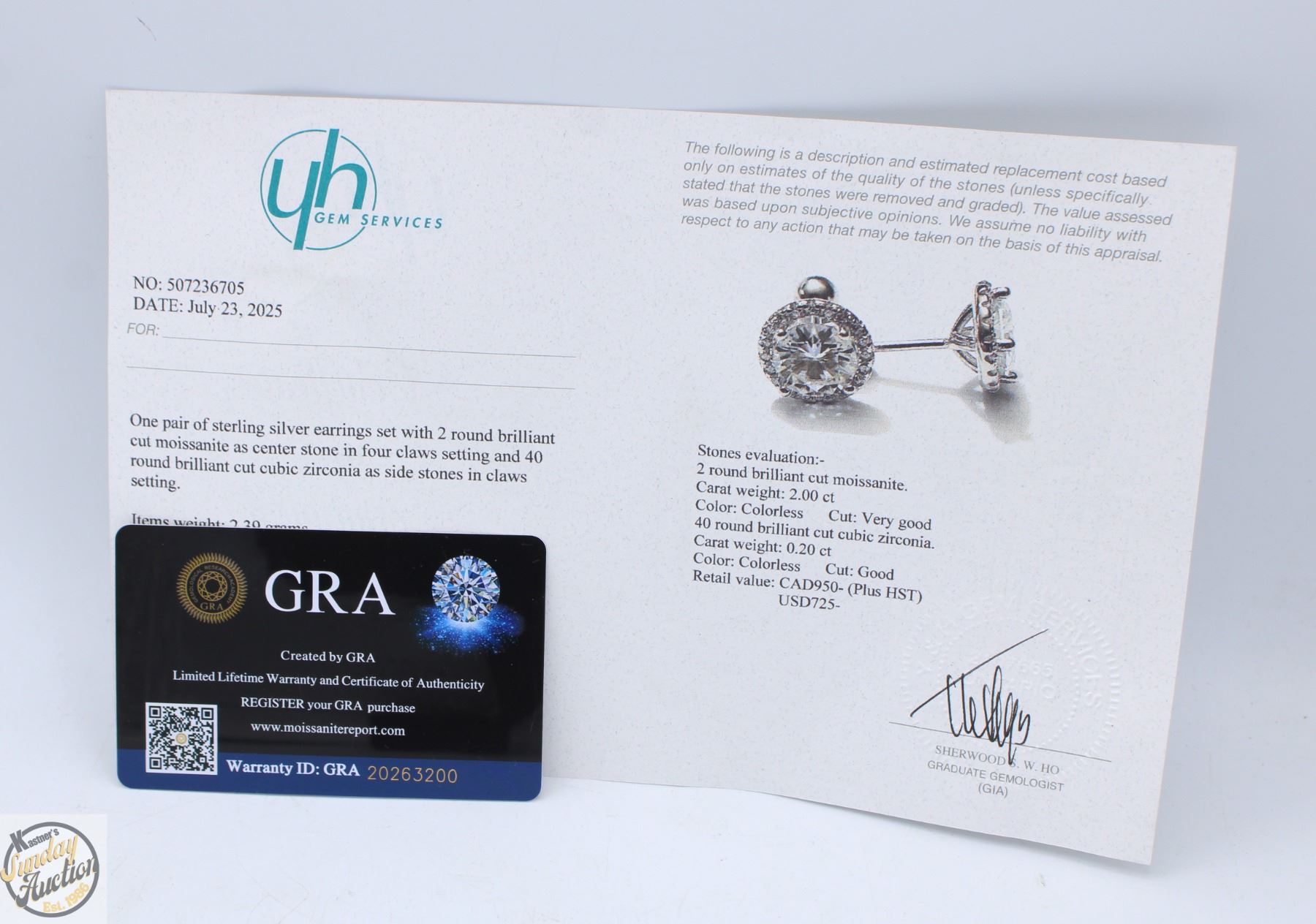 MOISSANITE STONES VVS D COLOR WITH 40 ROUND BRILLIANT CUT CUBIC ZIRCONIA SET IN ROUND HALOS SET IN 925 SILVER EARRINGS RETAIL VALUE $950.00 **ALL ITEMS MUST BE REMOVED BY 5PM SATURDAY, AUGUST 30TH 2025. ALL REMAINING ITEMS WILL BE SUBJECT TO A $6.00 PER DAY STORAGE CHARGE. ANY ITEMS REMAINING AFTER MONDAY, SEPTEMBER 15TH 2025 WILL BE CONSIDERED FORFEITED. NO REFUNDS WILL BE ISSUED FOR FORFEITED ITEMS. TO SCHEDULE A PICK UP APPOINTMENT CLICK HERE