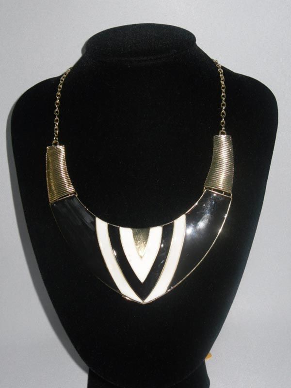 312CTW BLACK-WHITE V-NECK BRASS NECKLACE;18INCH **|**|** 312CTW BLACK-WHITE V-NECK BRASS NECKLACE;18INCH ; MSRP: $200