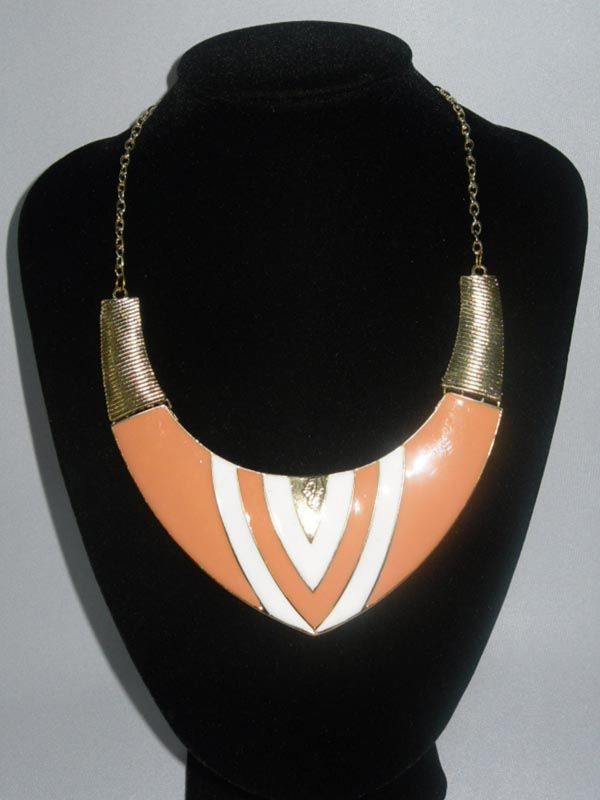 312CTW ORANGE-WHITE V-NECK BRASS NECKLACE;18INCH **|**|** 312CTW ORANGE-WHITE V-NECK BRASS NECKLACE;18INCH ; MSRP: $200