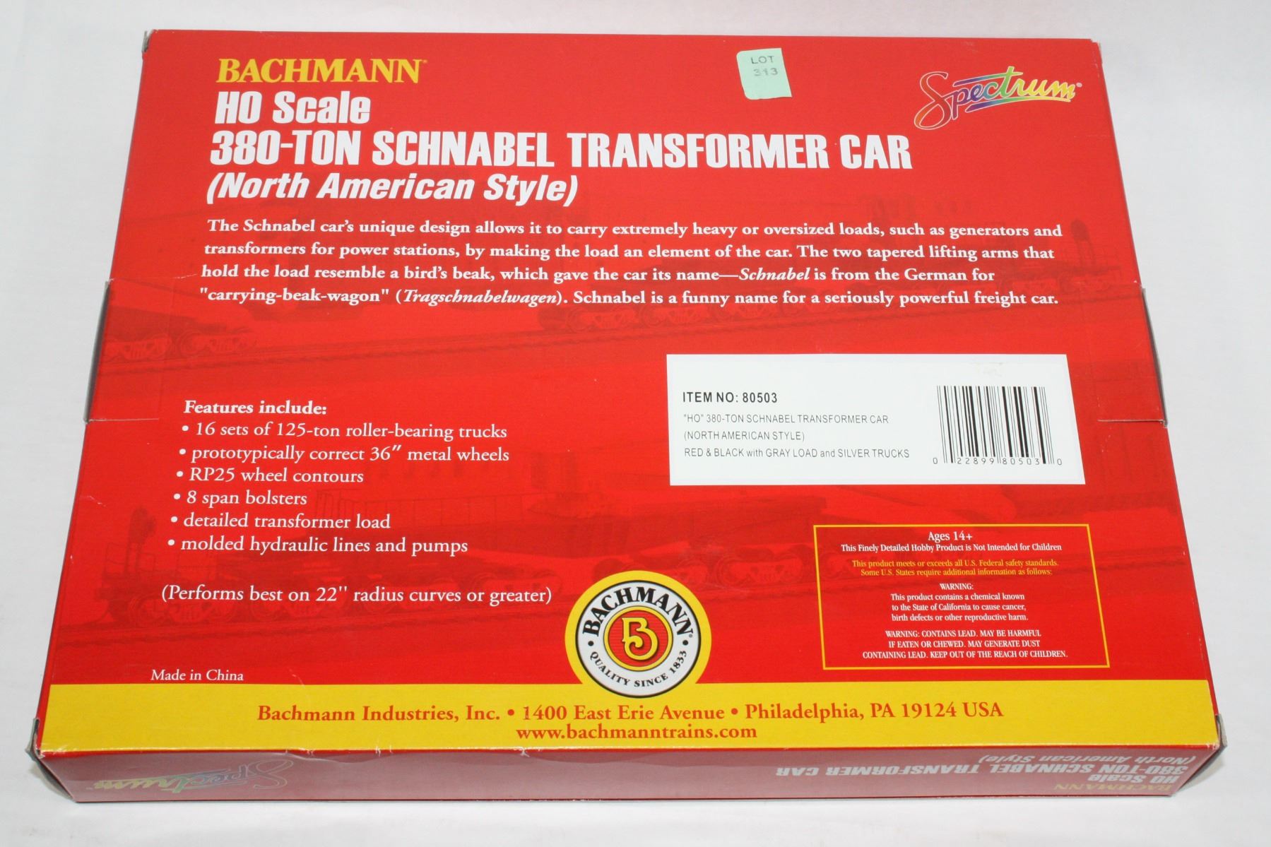 Bachmann Spectrum 80503 HO 380-Ton Schnabel Transformer Car North American Style Red & Black w/ gray Laod and Silver Trucks NOS NEW OLD STOCK From Large Scale Model Railroad Collection including New Old Stock Trains, Sealed Sets and Accessories