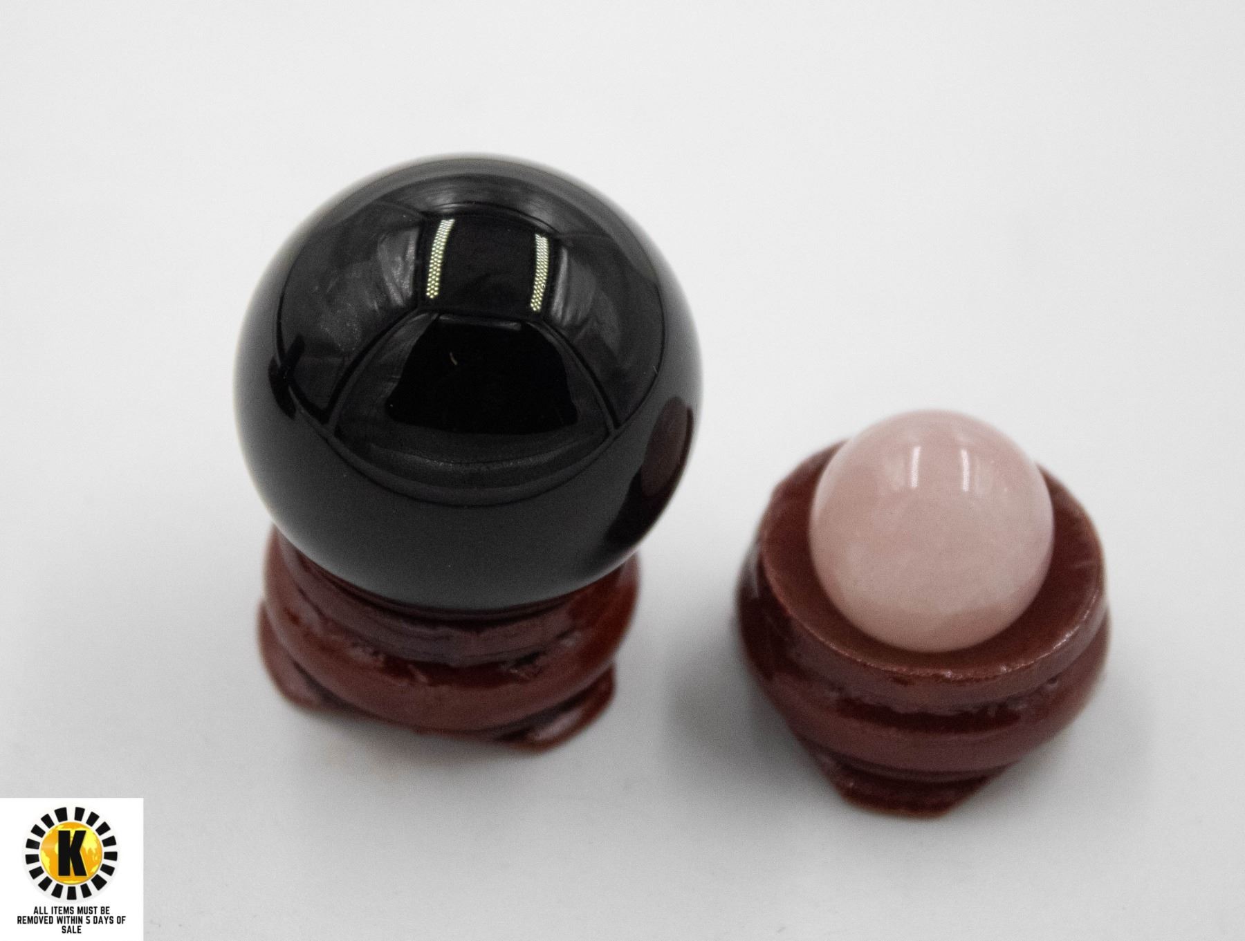 OBSIDIAN 29.7 MM WITH STAND /ROSE QZ 15.7MM/HEALING MINERAL