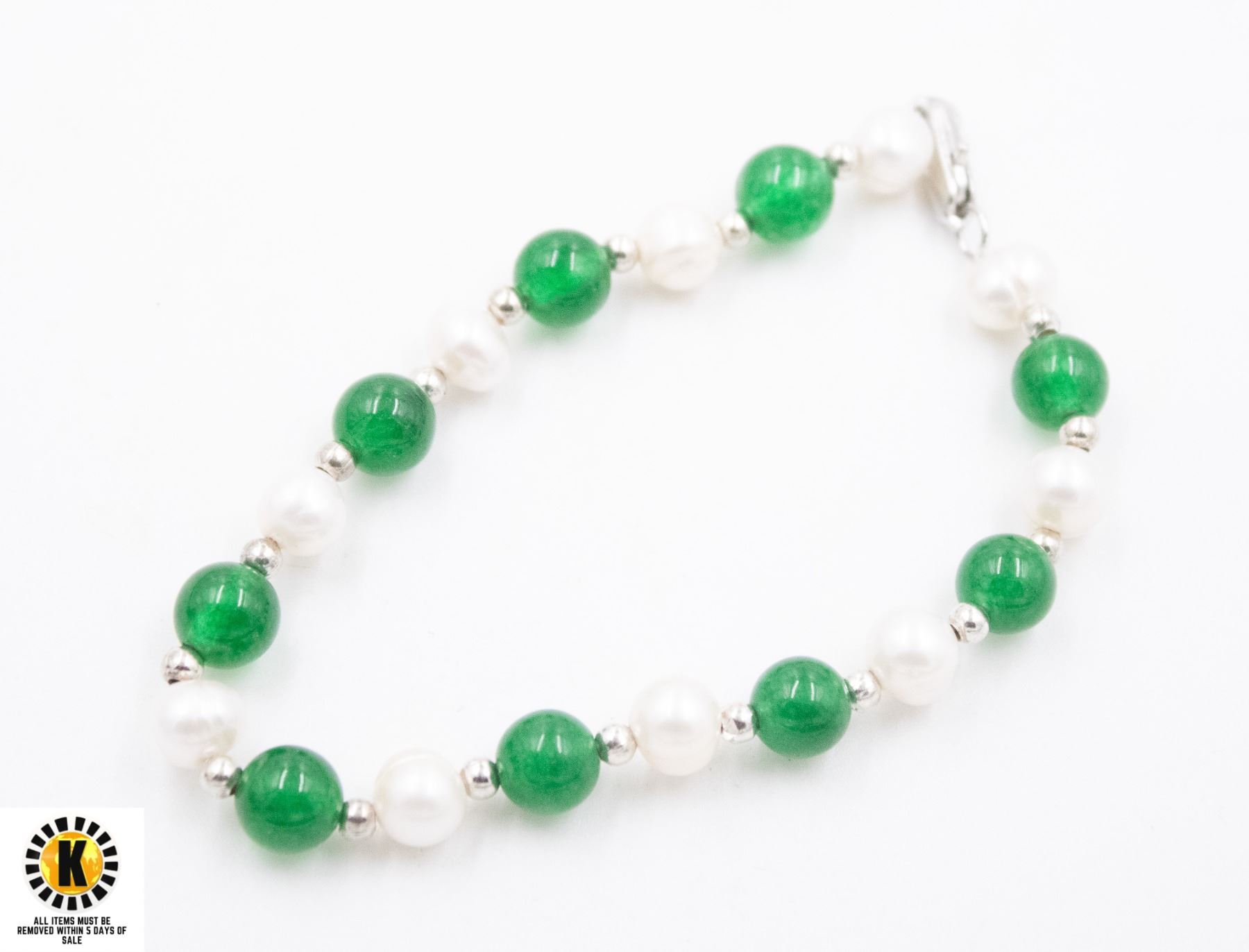 #314- FRESH WATER PEARL , GREEN EMRALD BRACELET
