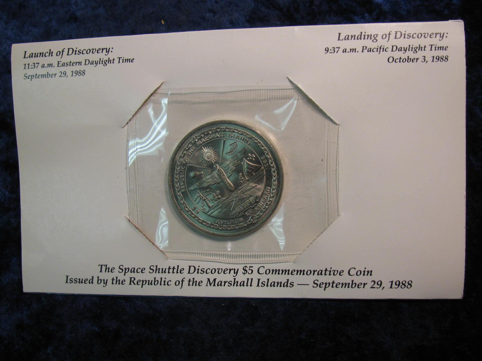 316. 1988 Space Shuttle Discovery $5 Commemorative Coin,Marshall Islands.