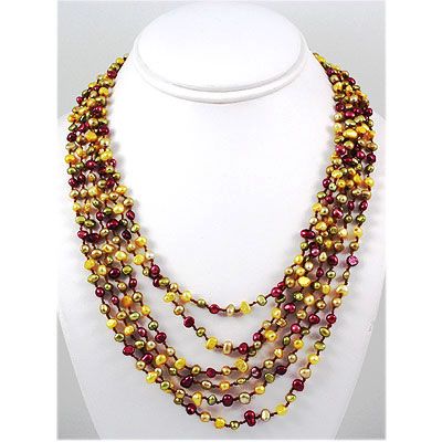 316.50ctw Freshwater Multi-Color Pearl Necklace **|**|** Natural Freshwater Pearl Dyed in Multi-Color Tiny Beads 6 Rows Hand Knotted Necklace, 19.5 inches long ; MSRP: $300