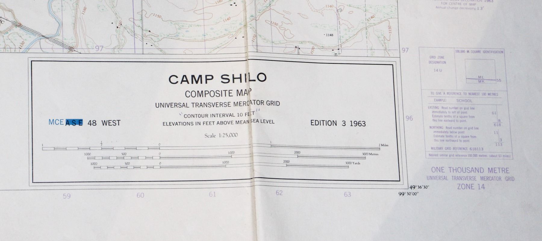 36 X 48 INCHES IN SIZE MILITARY MAP CAMP SHILO BRANDON MANITOBA CANADA