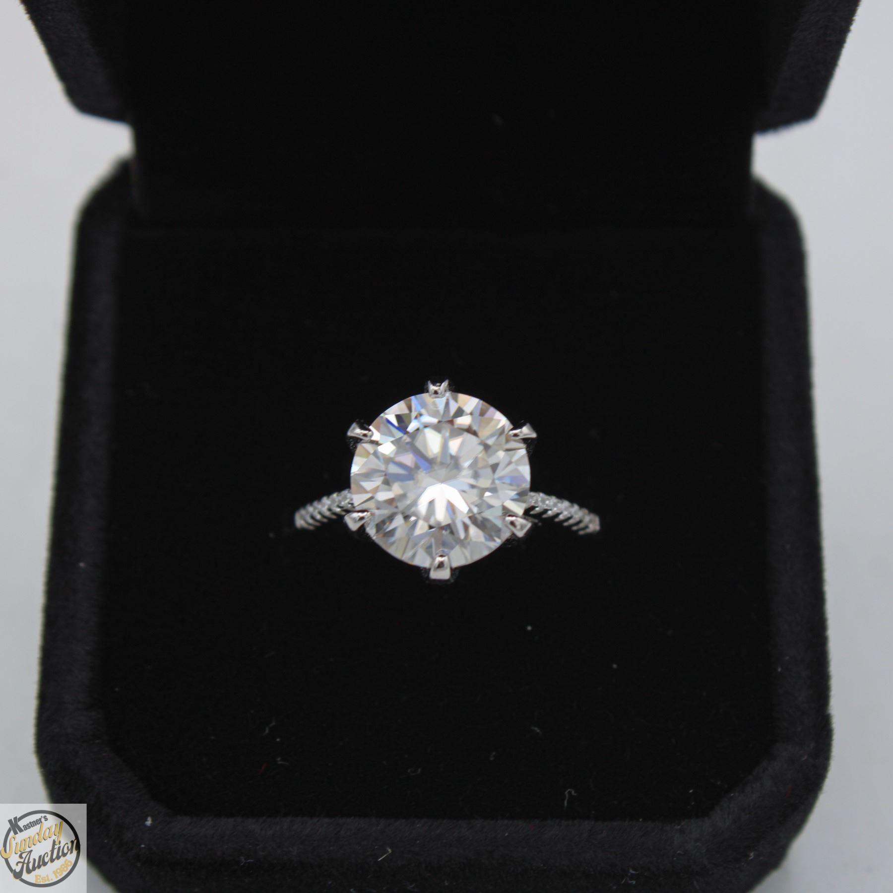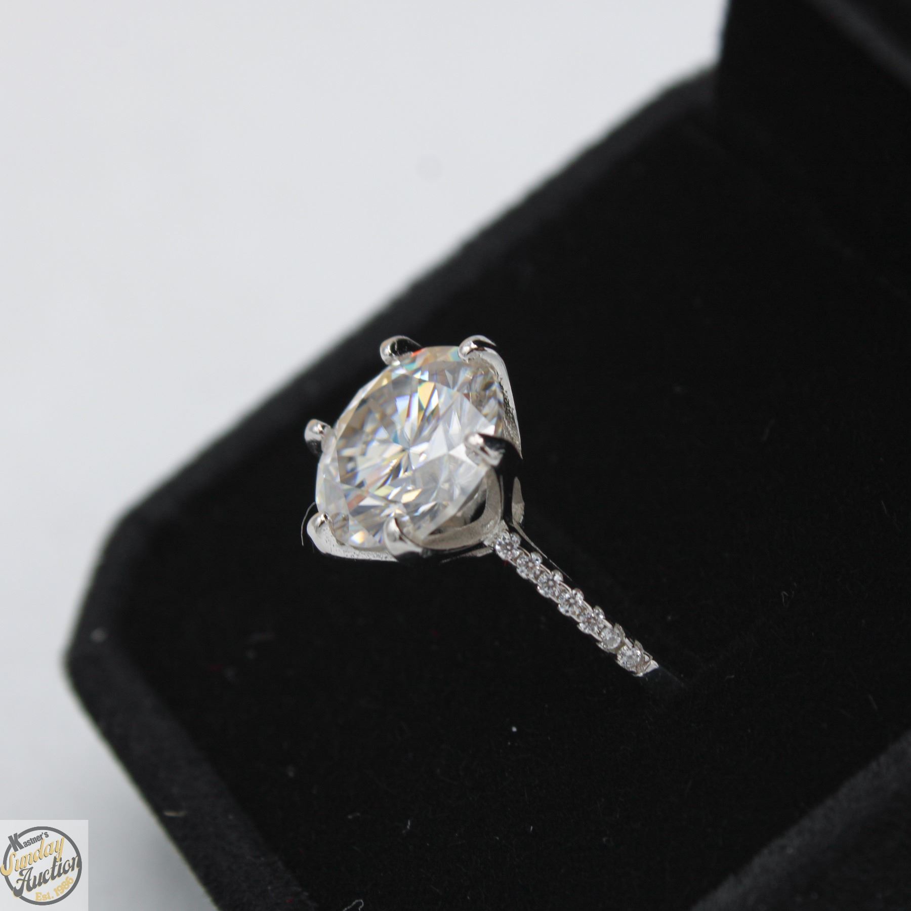CUT MOISSANITE STONE VVS D COLOR SET IN CENTER WITH 14 ROUND BRILLIANT CUT CUBIC ZIRCONIA AND SET IN SHANK SET IN 925 SILVER RING SIZE 7 RETAIL VALUE $1,450.00 **ALL ITEMS MUST BE REMOVED BY 5PM SATURDAY, SEPTEMBER 6TH 2025. ALL REMAINING ITEMS WILL BE SUBJECT TO A $6.00 PER DAY STORAGE CHARGE. ANY ITEMS REMAINING AFTER MONDAY, SEPTEMBER 22ND 2025 WILL BE CONSIDERED FORFEITED. NO REFUNDS WILL BE ISSUED FOR FORFEITED ITEMS. TO SCHEDULE A PICK UP APPOINTMENT CLICK HERE