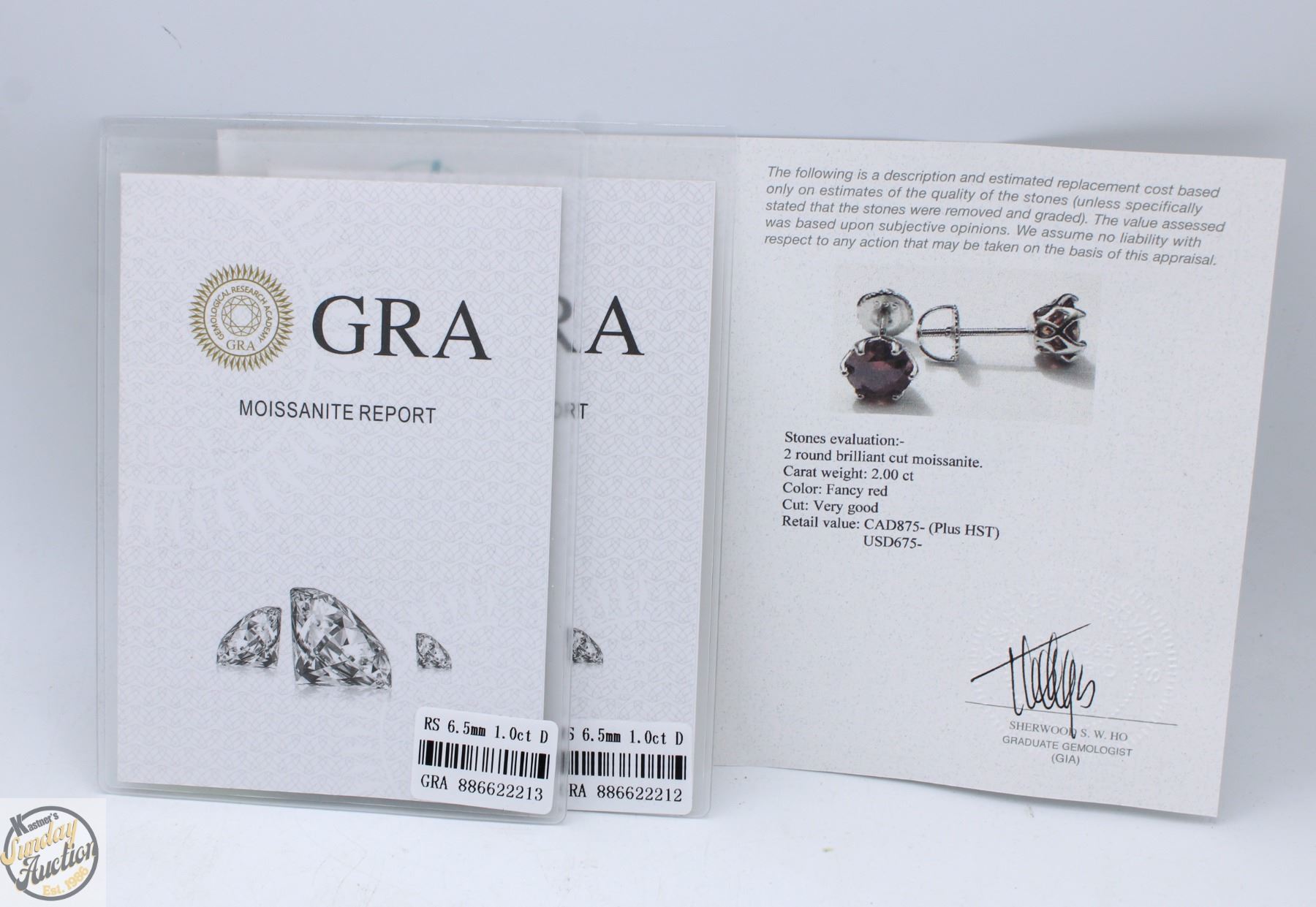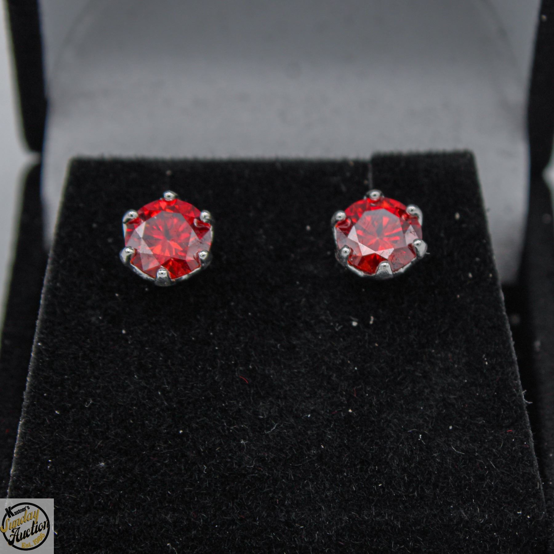 BRILLIANT CUT MOISSANITE STONES VVS RED COLOR SET IN 6 CLAW FILAGREE HEAD SET IN 925 SILVER EARRINGS WITH SCREW BACKS RETAIL VALUE $875.00 **ALL ITEMS MUST BE REMOVED BY 5PM SATURDAY, SEPTEMBER 6TH 2025. ALL REMAINING ITEMS WILL BE SUBJECT TO A $6.00 PER DAY STORAGE CHARGE. ANY ITEMS REMAINING AFTER MONDAY, SEPTEMBER 22ND 2025 WILL BE CONSIDERED FORFEITED. NO REFUNDS WILL BE ISSUED FOR FORFEITED ITEMS. TO SCHEDULE A PICK UP APPOINTMENT CLICK HERE
