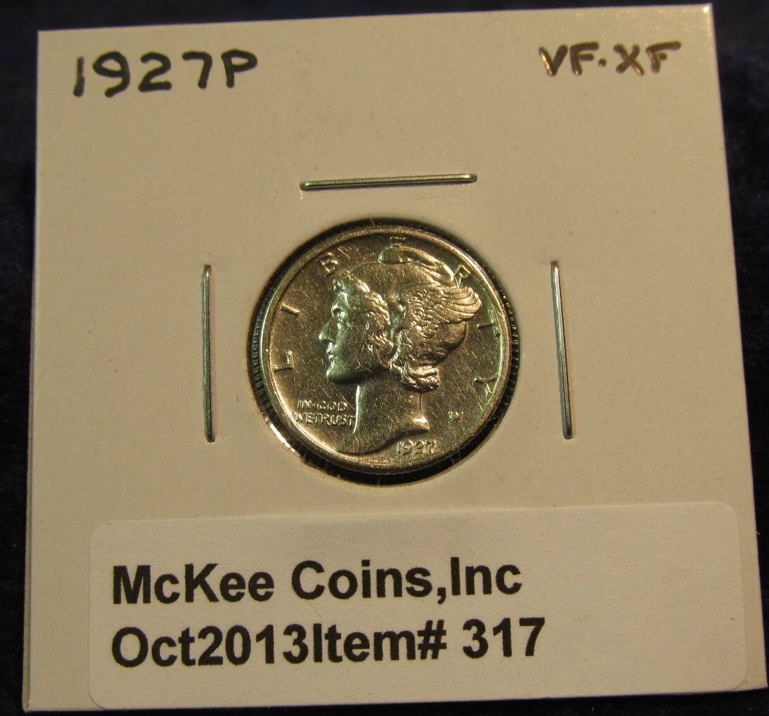 317. 1927 P Mercury Dime. VF-EF.