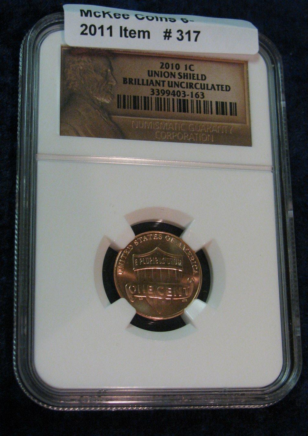 317. 2010 P Cent "Union Shield" slabbed Brilliant Unc.
