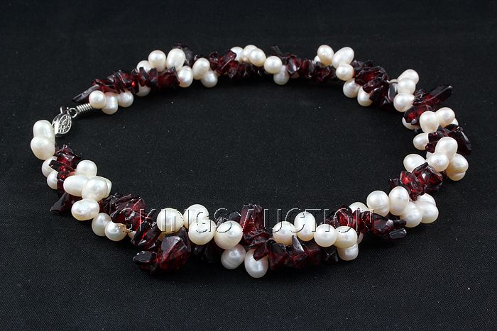 317.89CTW 16" RED-WHITE FRESHWATER PEARL AND CHIPPED ST **|**|** 317.89CTW 16" RED-WHITE FRESHWATER PEARL AND CHIPPED STONE NECKLACE METAL LOCK PHILIPPINES ; MSRP: $200