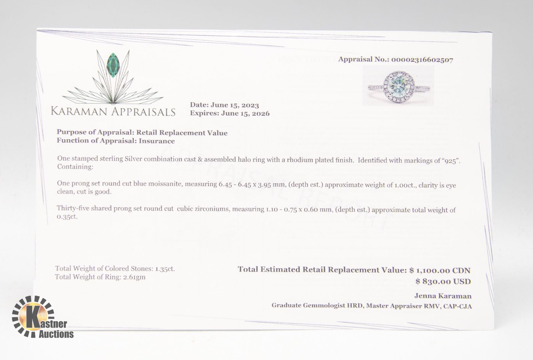 If for any reason, Kastner Auctions Ltd is unable to deliver any or all of an awarded lot or title thereof, the sole liability of Kastner Auctions Ltd shall be the refund of any monies paid on the lot.
