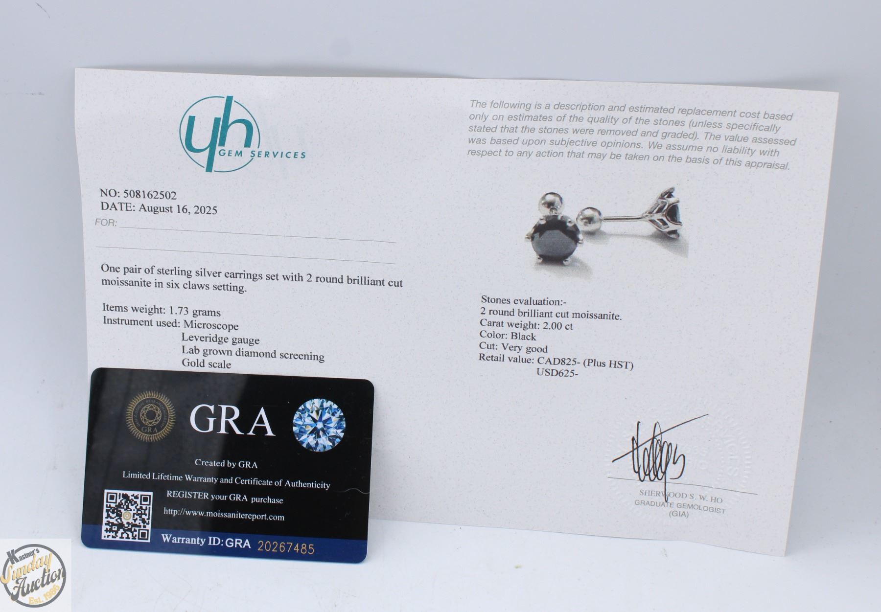 CUT MOISSANITE STONES VVS BLACK COLOR SET IN 4 CLAW FILAGREE HEAD SET IN 925 SILVER EARRINGS WITH SCREW BACKS RETAIL VALUE $825.00 **ALL ITEMS MUST BE REMOVED BY 5PM SATURDAY, SEPTEMBER 6TH 2025. ALL REMAINING ITEMS WILL BE SUBJECT TO A $6.00 PER DAY STORAGE CHARGE. ANY ITEMS REMAINING AFTER MONDAY, SEPTEMBER 22ND 2025 WILL BE CONSIDERED FORFEITED. NO REFUNDS WILL BE ISSUED FOR FORFEITED ITEMS. TO SCHEDULE A PICK UP APPOINTMENT CLICK HERE
