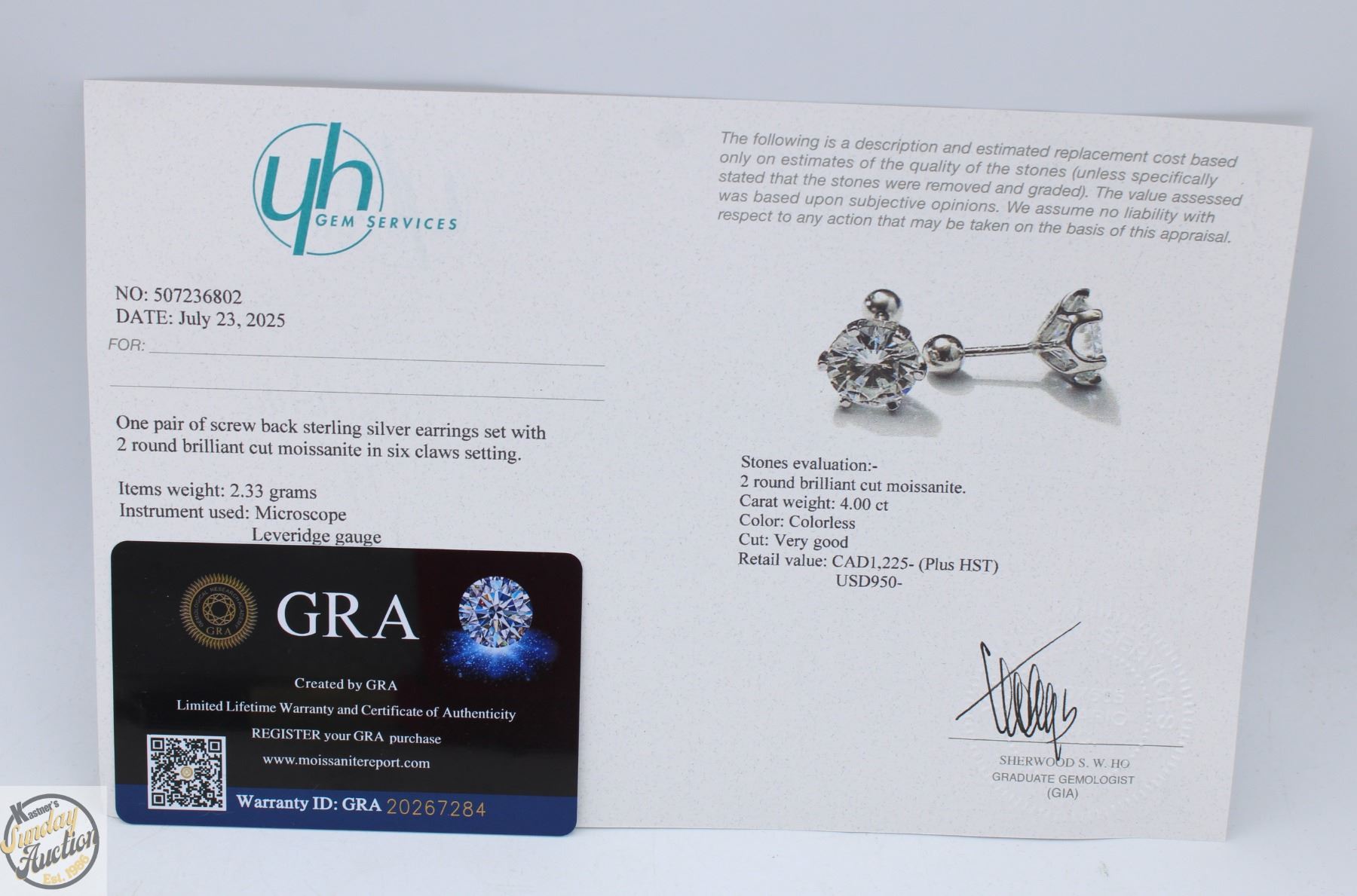 BRILLIANT CUT MOISSANITE STONES VVS D COLOR SET IN 6 CLAW BASKET HEAD SET IN 925 SILVER EARRINGS WITH SCREW BACKS RETAIL VALUE $1,225.00 **ALL ITEMS MUST BE REMOVED BY 5PM SATURDAY, SEPTEMBER 6TH 2025. ALL REMAINING ITEMS WILL BE SUBJECT TO A $6.00 PER DAY STORAGE CHARGE. ANY ITEMS REMAINING AFTER MONDAY, SEPTEMBER 22ND 2025 WILL BE CONSIDERED FORFEITED. NO REFUNDS WILL BE ISSUED FOR FORFEITED ITEMS. TO SCHEDULE A PICK UP APPOINTMENT CLICK HERE