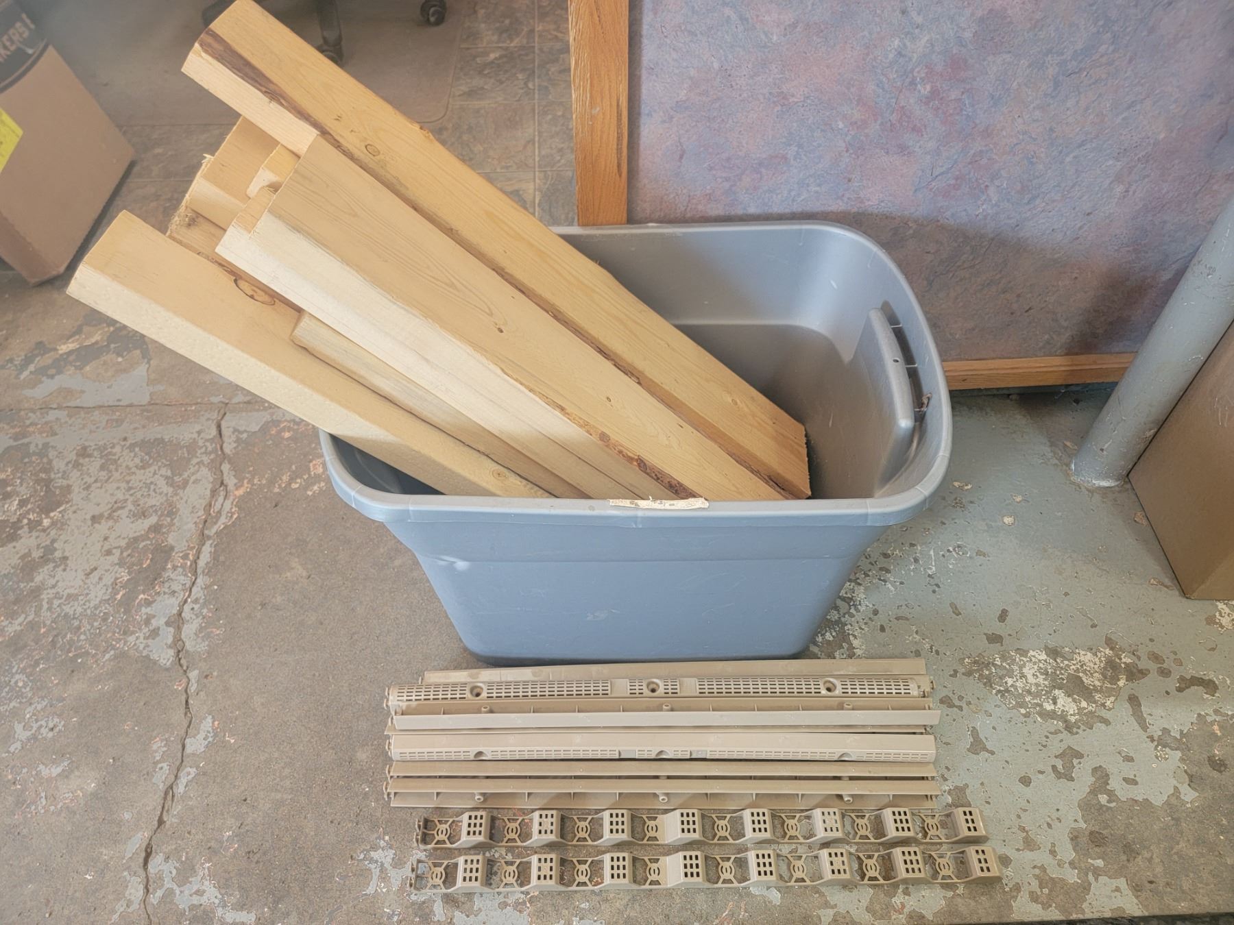 319 – Assorted Wood Pieces 2x4 and 2x6 and Plastic Enclosures for corrugated plastic roofing such as “sun tuff” 12 – rounded 2 – corrugated