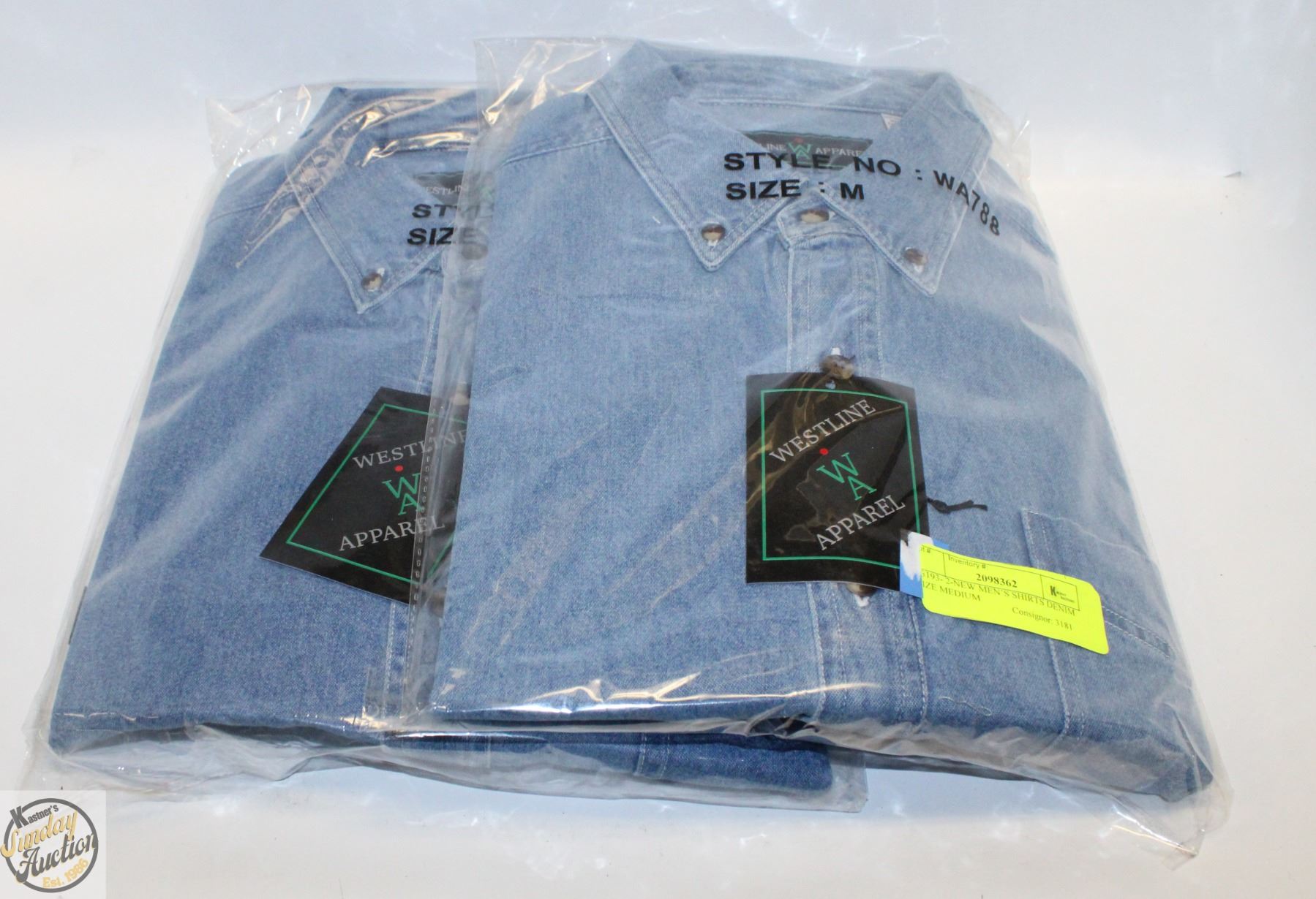 #3193- 2-NEW MEN’S SHIRTS DENIM SIZE MEDIUM