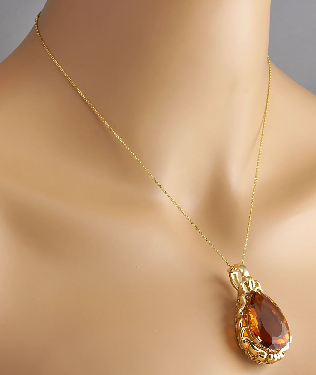 32.00CTW Natural Madeira Citrine Pendant In 18K Solid Yellow Gold