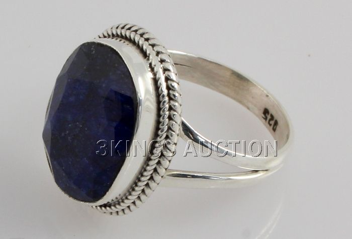 32.00ctw SapphireCorrundum OvalStone SilverRing **|**|** Fine Sterling Silver Oval Ring with Natural Sapphire Gemstone size: 16.52x12.75mm; color: Blue; ring size: 7; Stone Family: Corrundum ; MSRP: $400