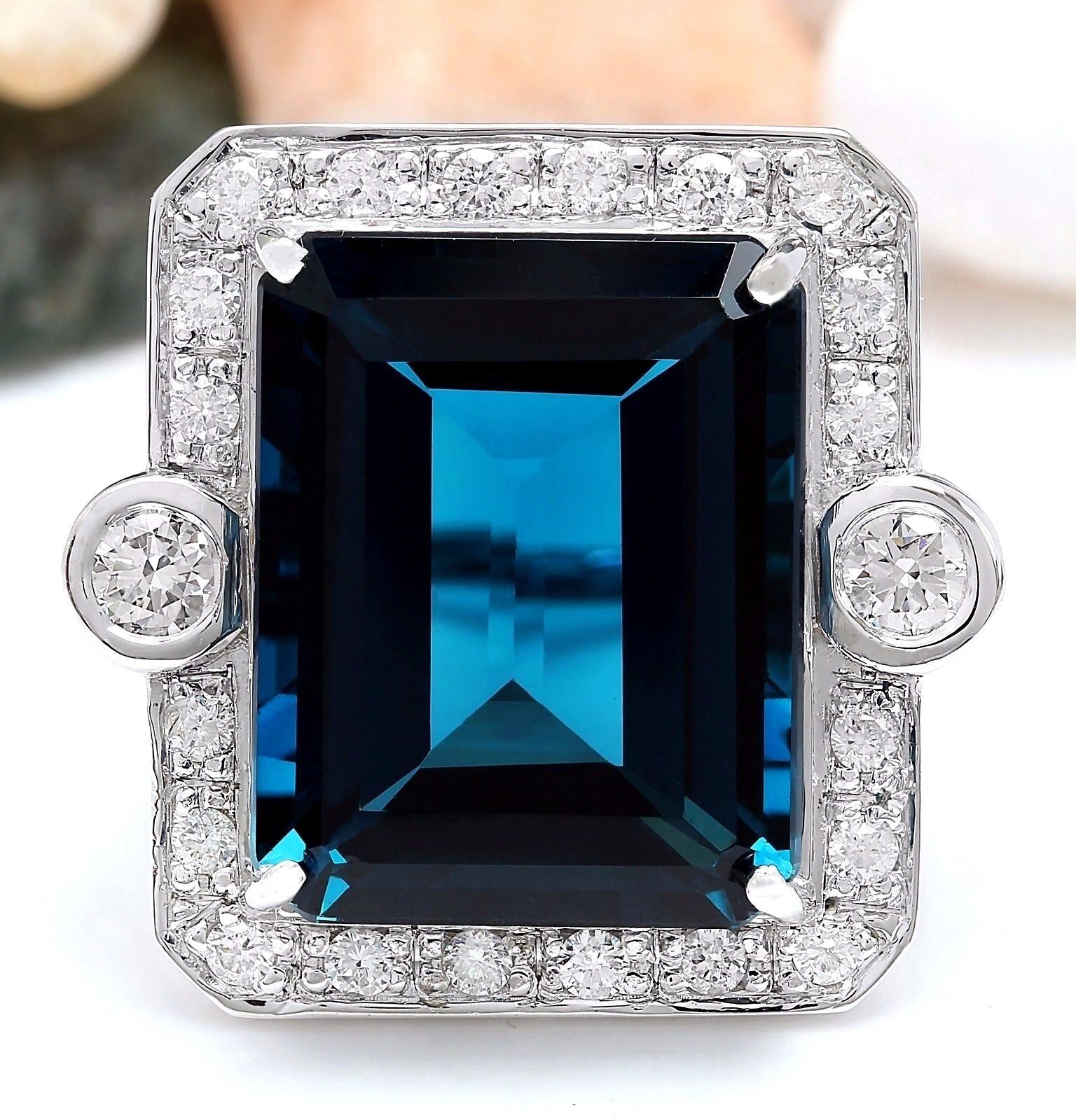 32.09 Carat Natural Topaz 14K Solid White Gold Diamond Ring