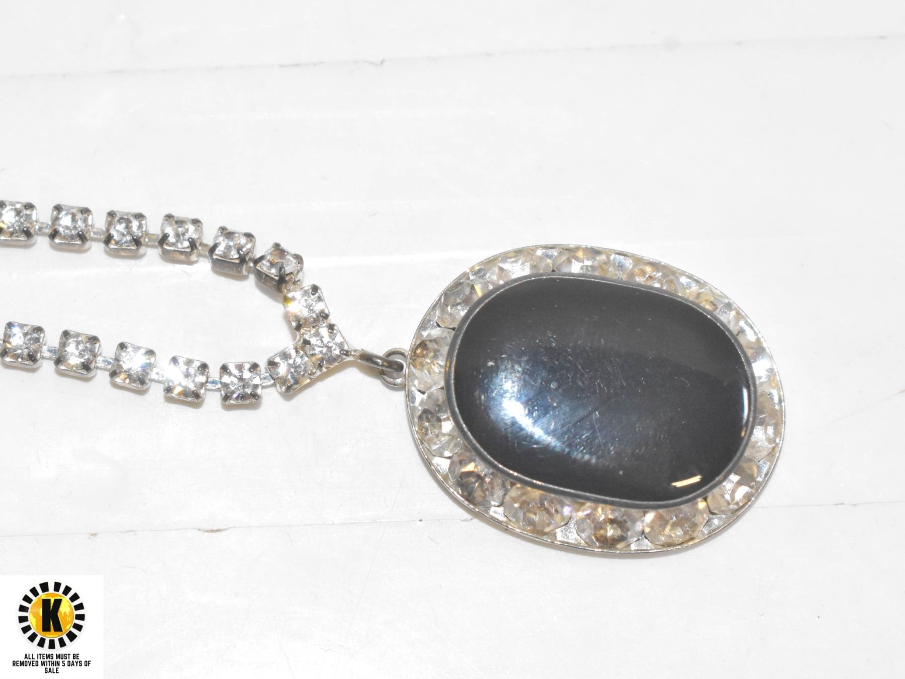 FEATURING LARGE OVAL BLACK STONE W/ CLEAR RHINESTONE HALO