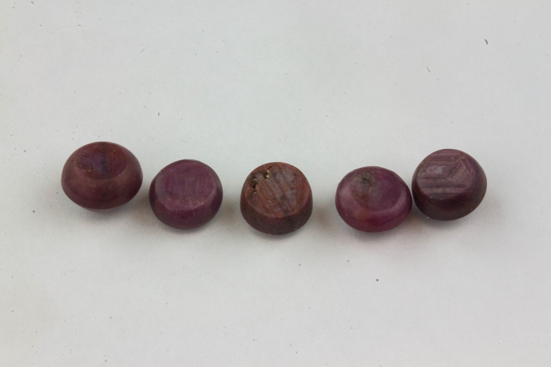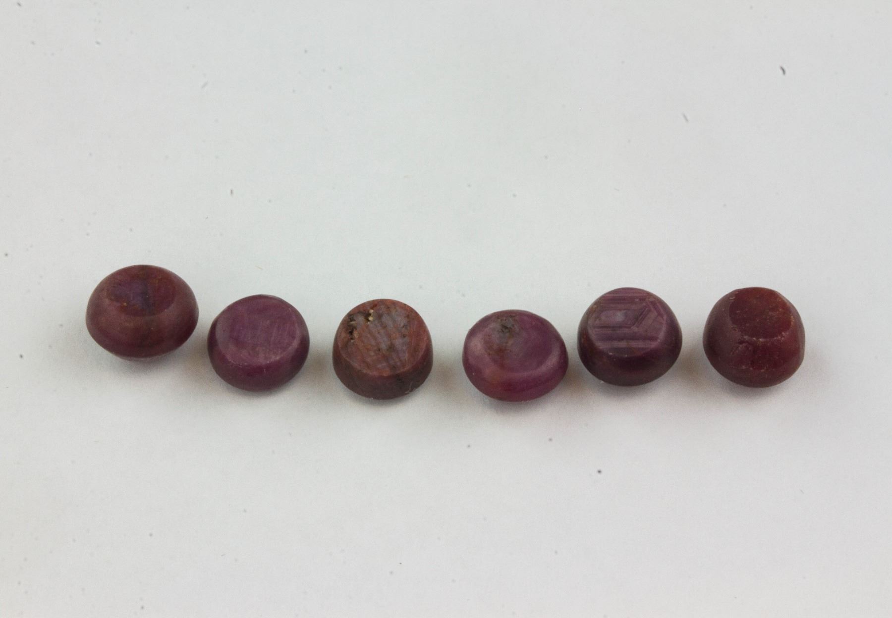 6 pieces of genuine round shape ruby gemstones; replacement value $ 400; D: 0.5 cm, 32.15 ct (total)