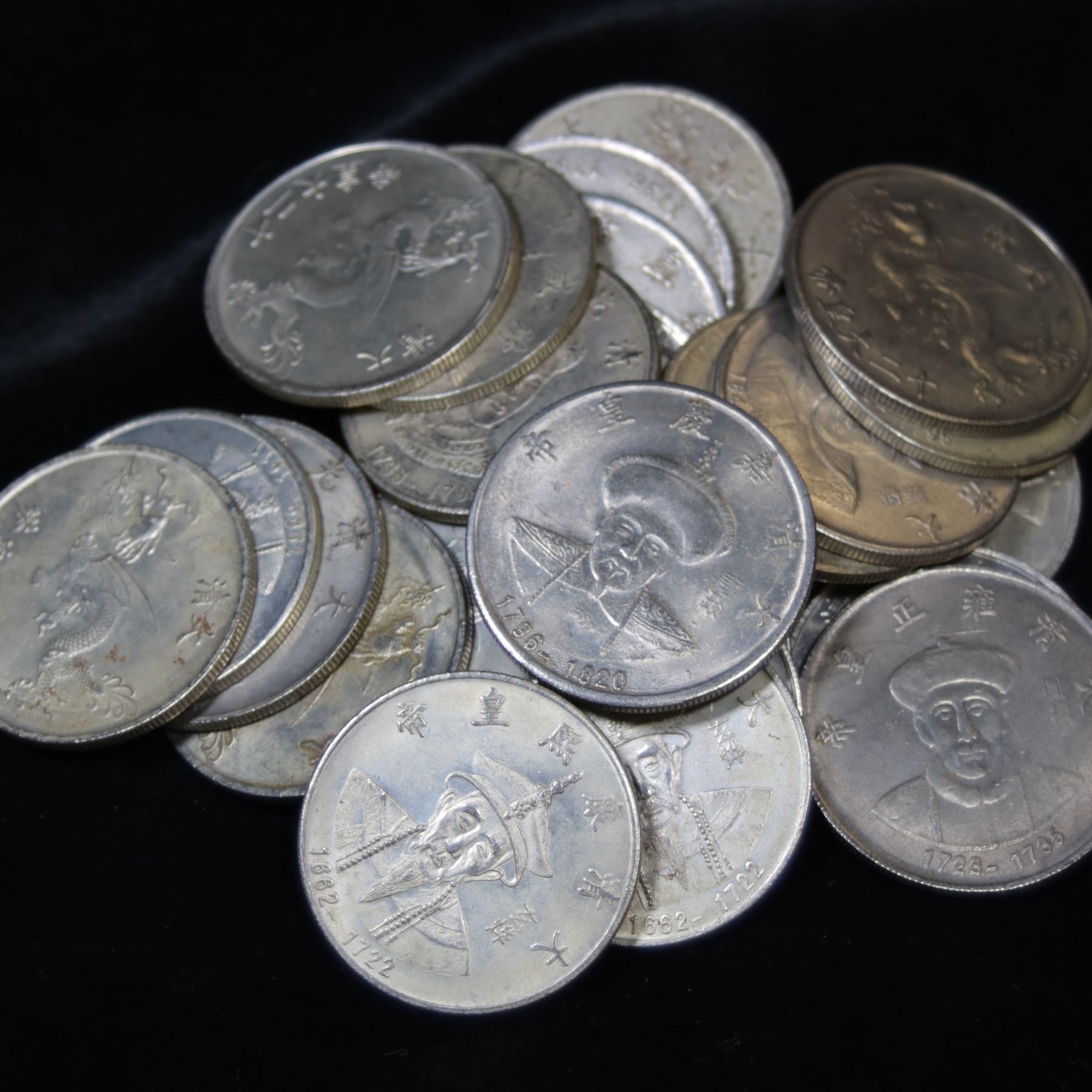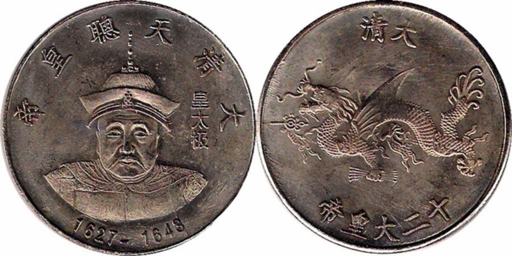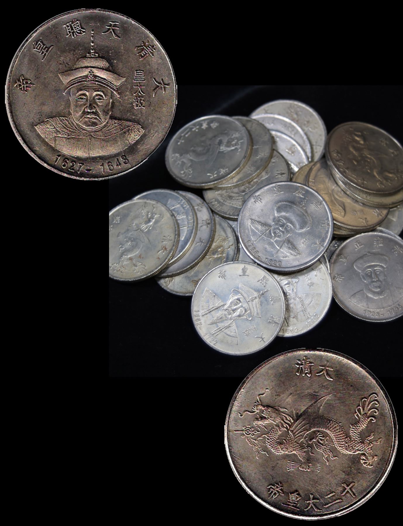 32 1627-1643 Hong Taiji Chinese Tokens . .. 32 1627-1643 Hong Taiji Chinese Tokens. Bust of Hong Taiji Emperor on Obverse, and a Dragon on Reverse. Composed of Copper-Nickel.